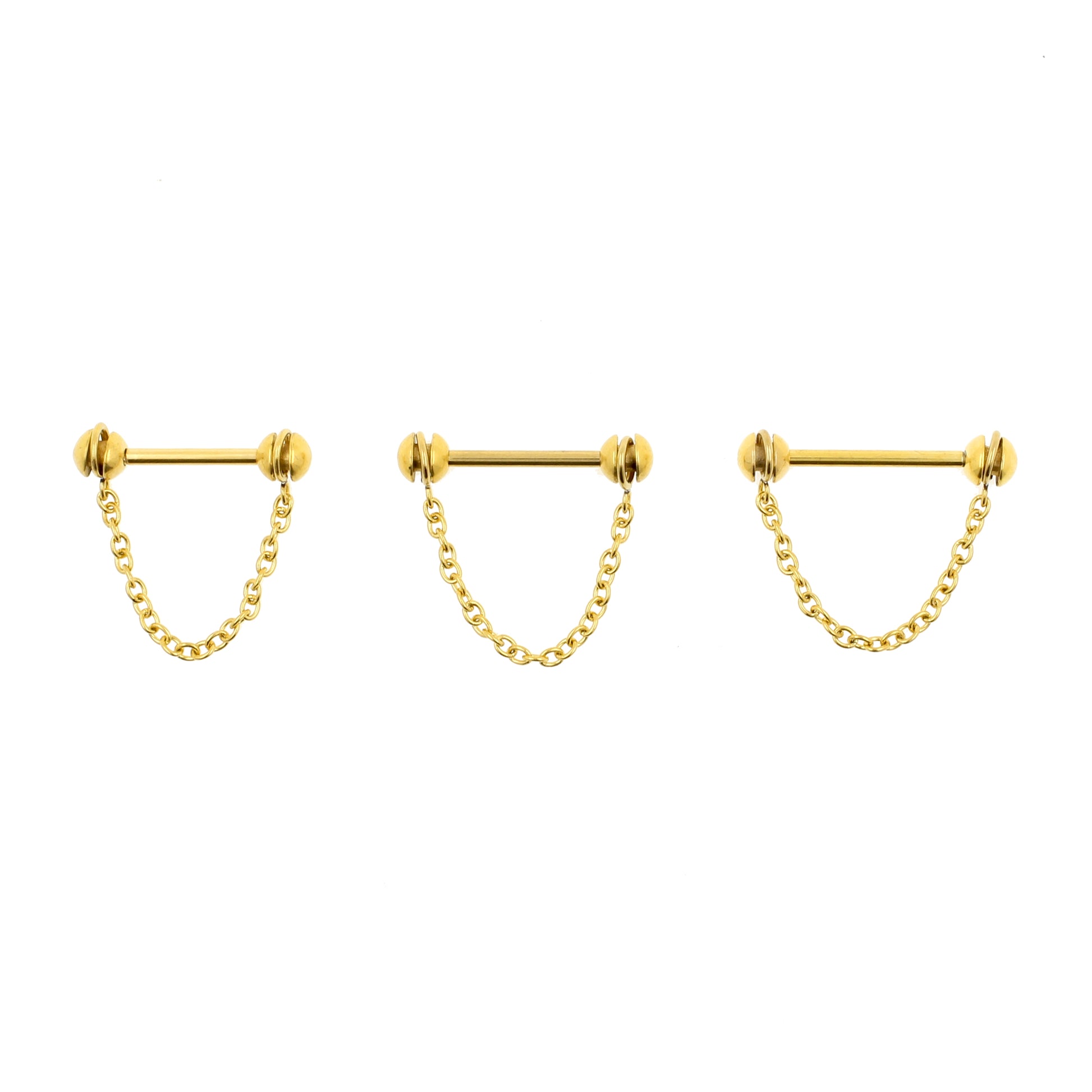 Surgical Steel Nipple Barbell With Chain Gold