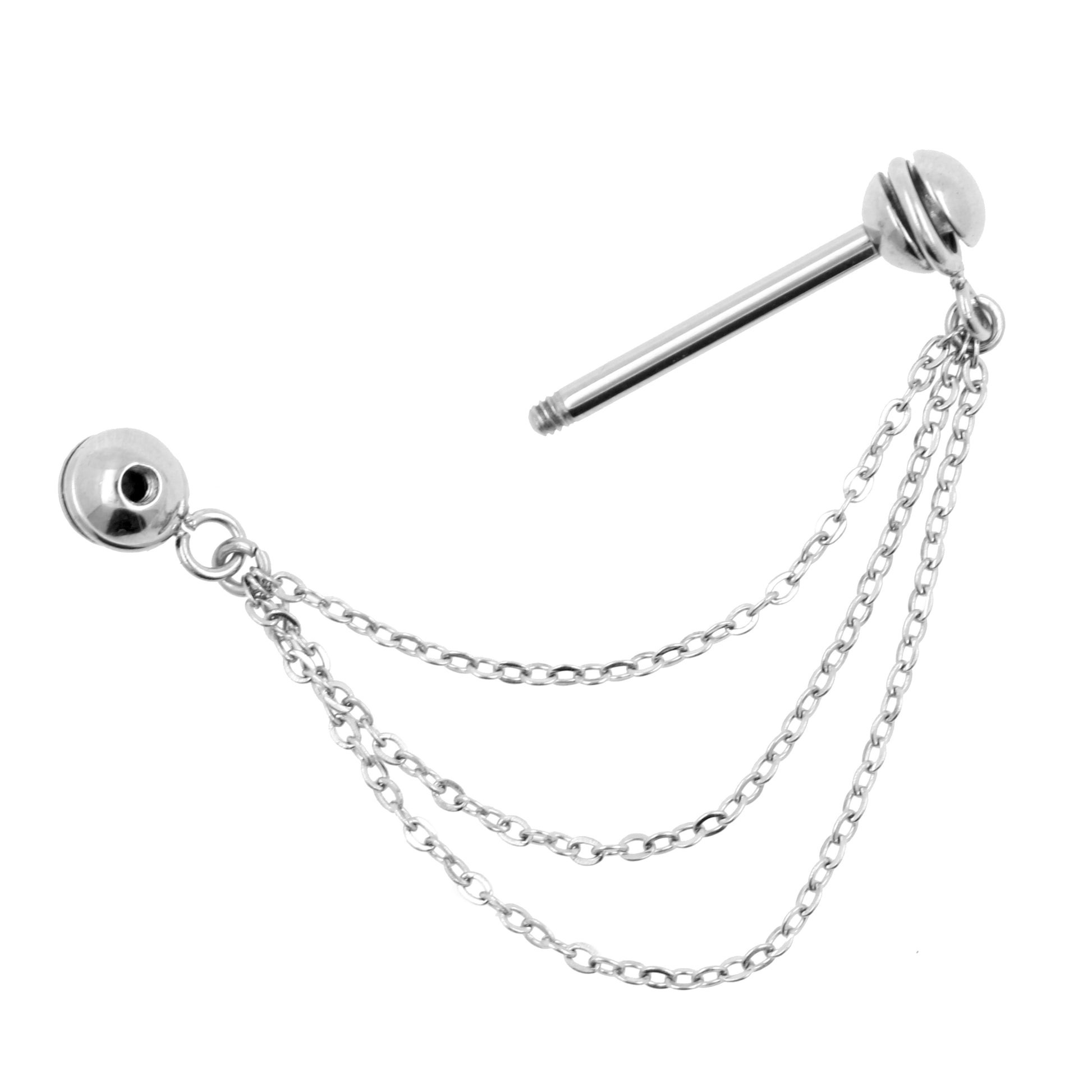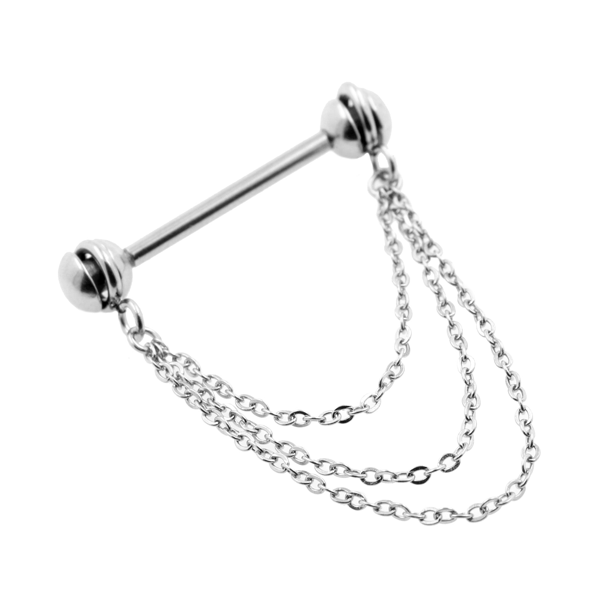 Oh la la... add some va-va-voom to your piercings! Stylish barbell that measures 1,6 mm in thickness, with a little chain that adds a lovely touch to your nipple piercing. Available in several lengths. These barbells are an absolute hit for nipple piercings!