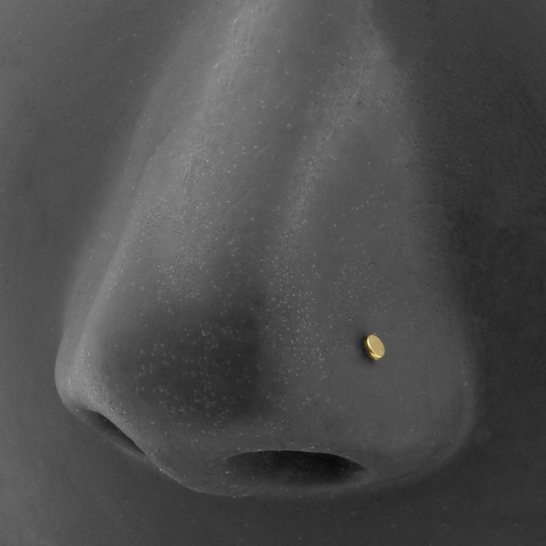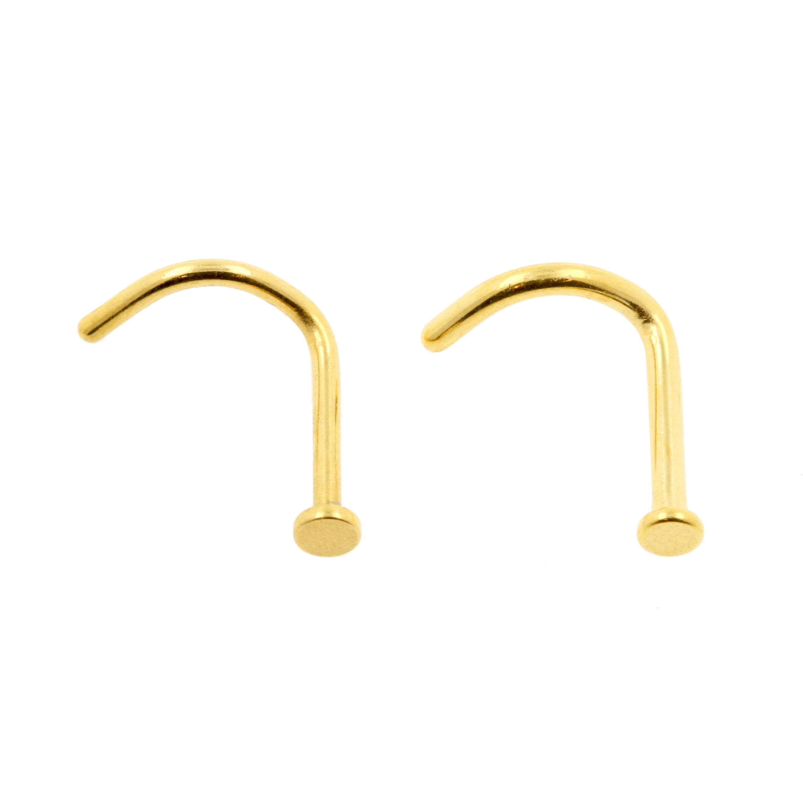 Spice up that nose! This nosestud is made of rose gold P.V.D. coated 316L surgical steel and measures 0,8 mm in thickness. The top end is set with a small disc, the stem is curved to keep the jewelry in place once worn in your piercing. Perfect for pierced nostrils!