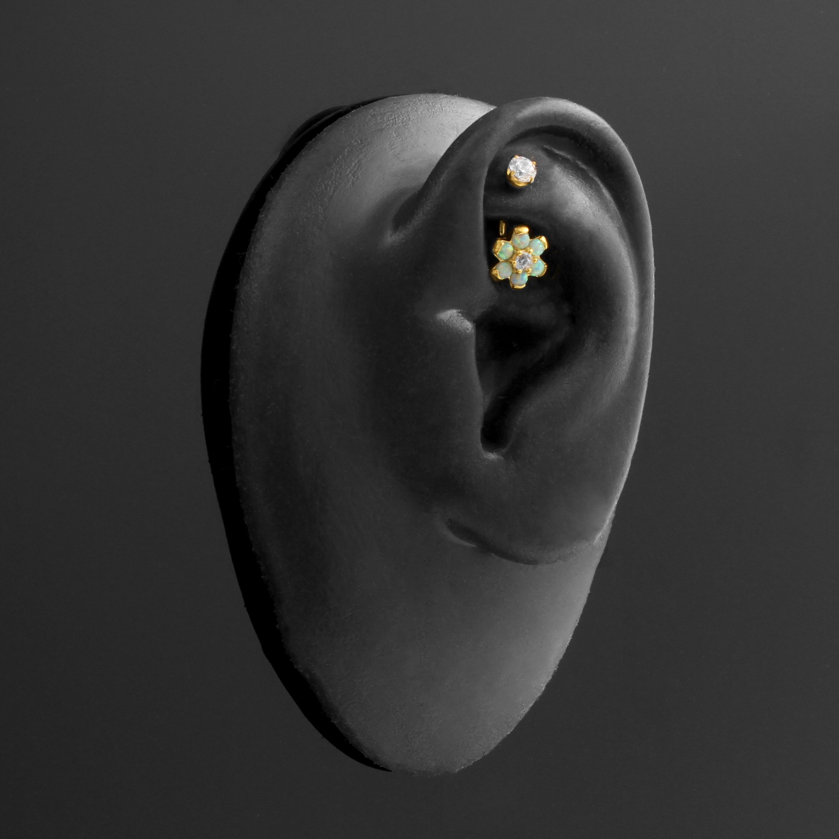 Surgical Steel Opal Zirconia Flower - Rook Piercing Light Green Opal