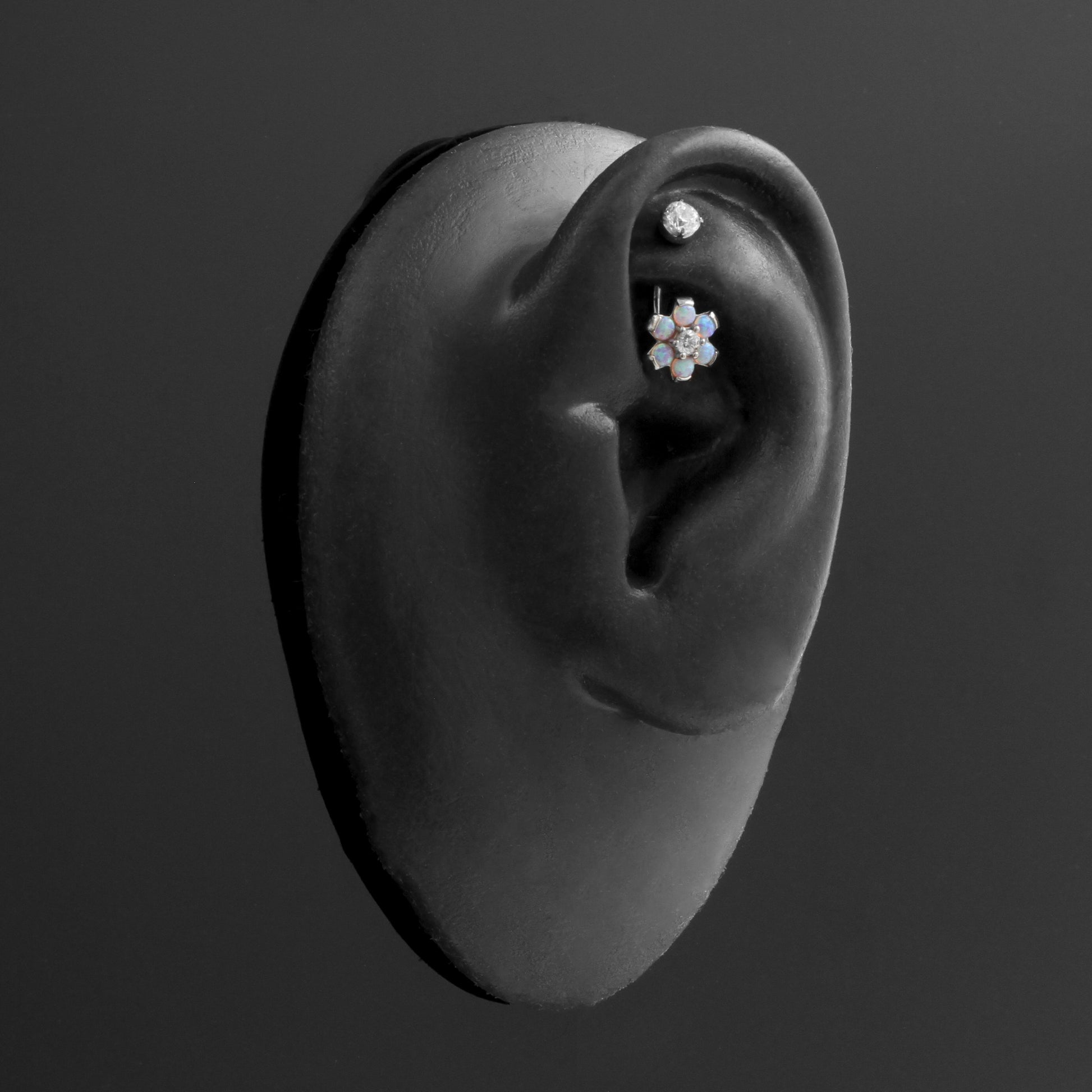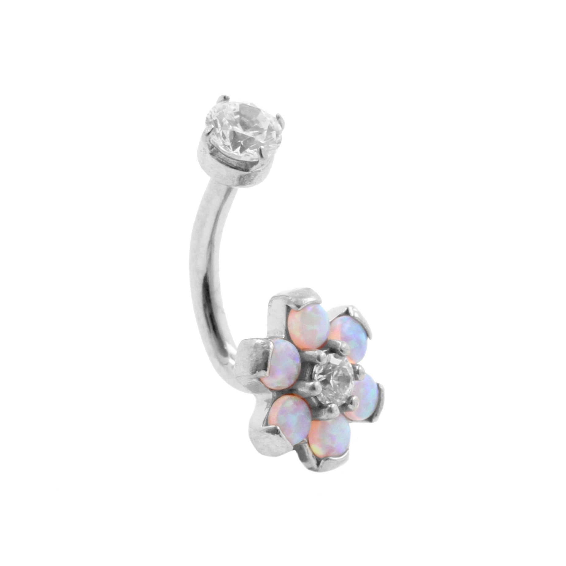 Surgical Steel Opal Zirconia Flower - Rook Piercing Pink Opal