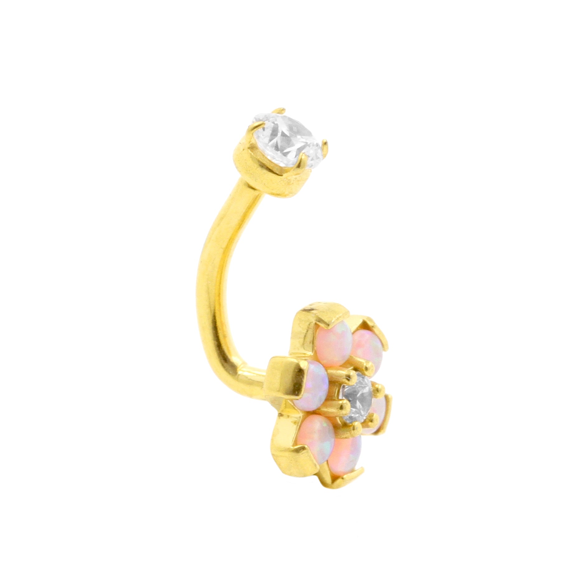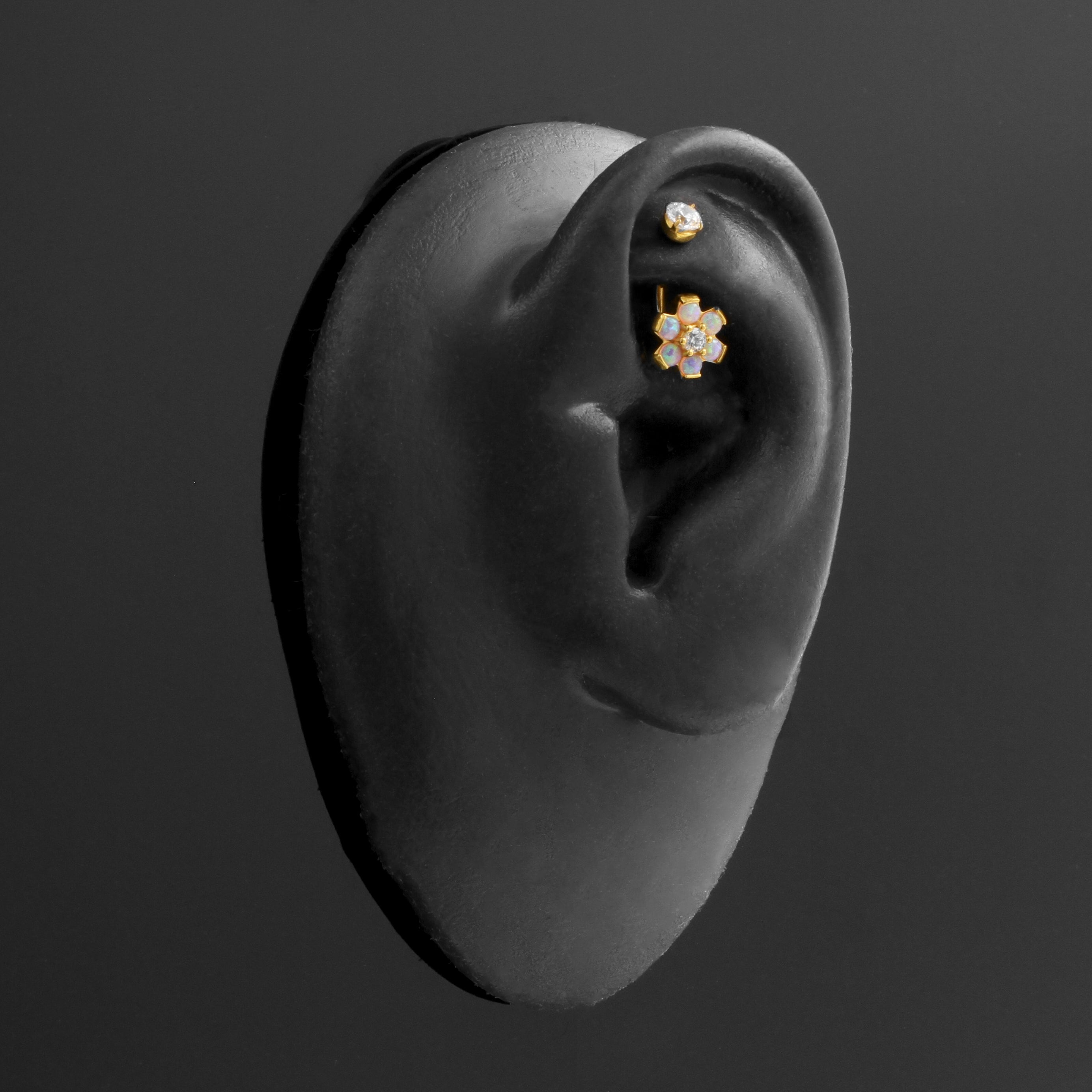 Surgical Steel Opal Zirconia Flower - Rook Piercing Pink Opal