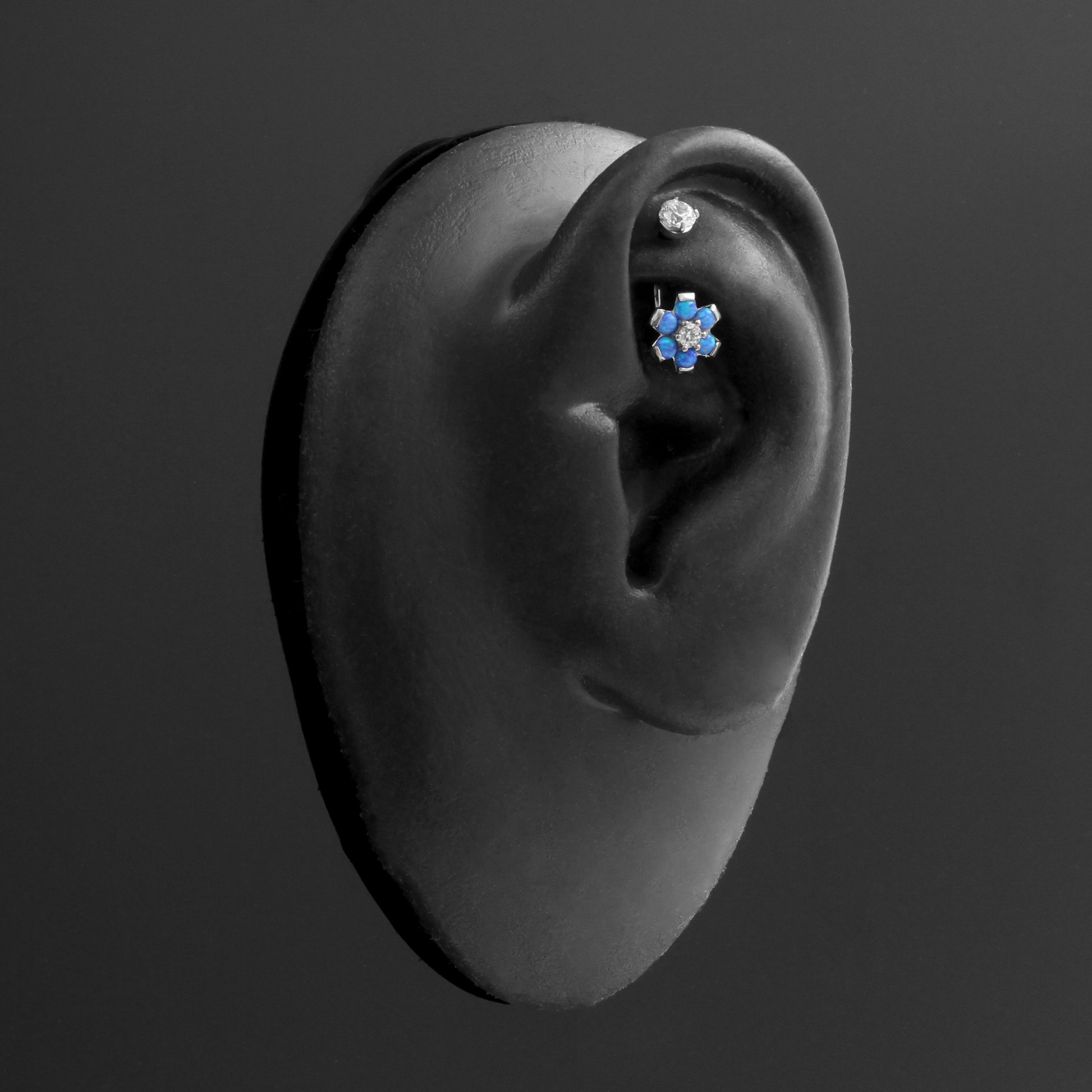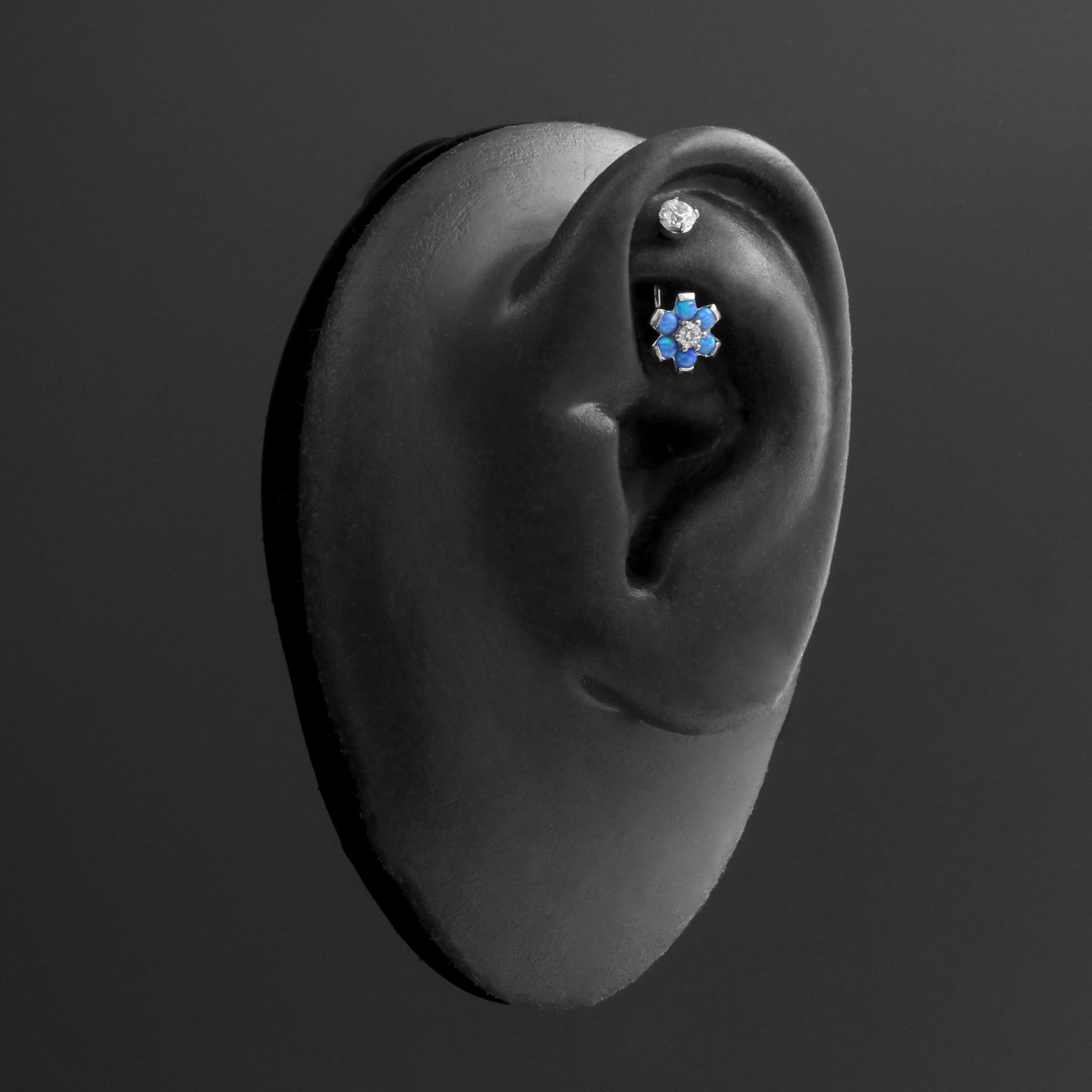 Surgical Steel Opal Zirconia Flower - Rook Piercing Sapphire Blue Opal