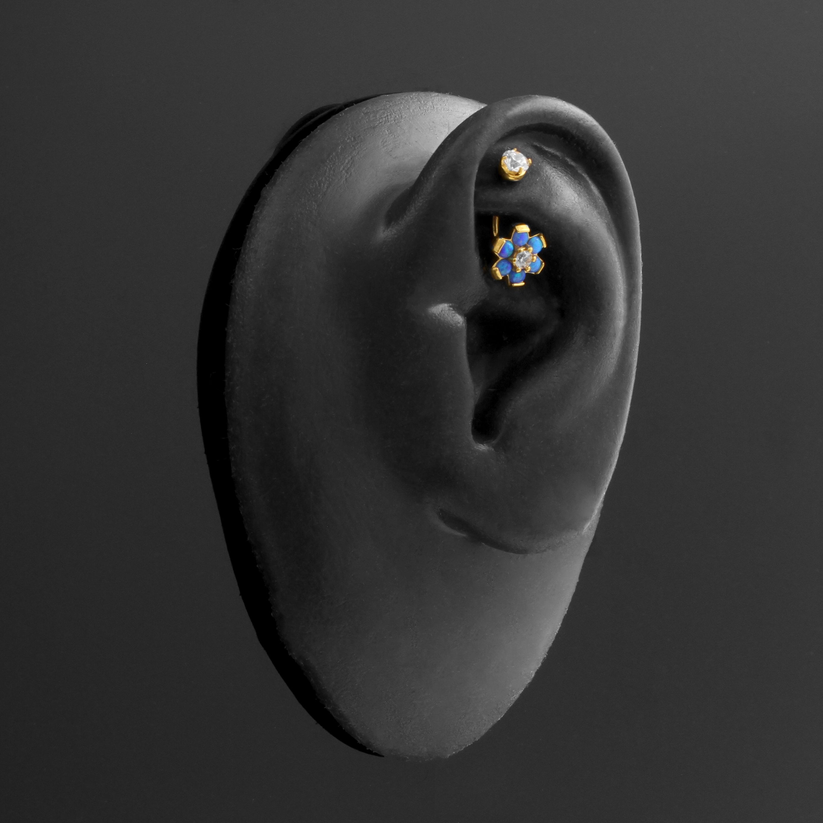 Surgical Steel Opal Zirconia Flower - Rook Piercing Sapphire Blue Opal