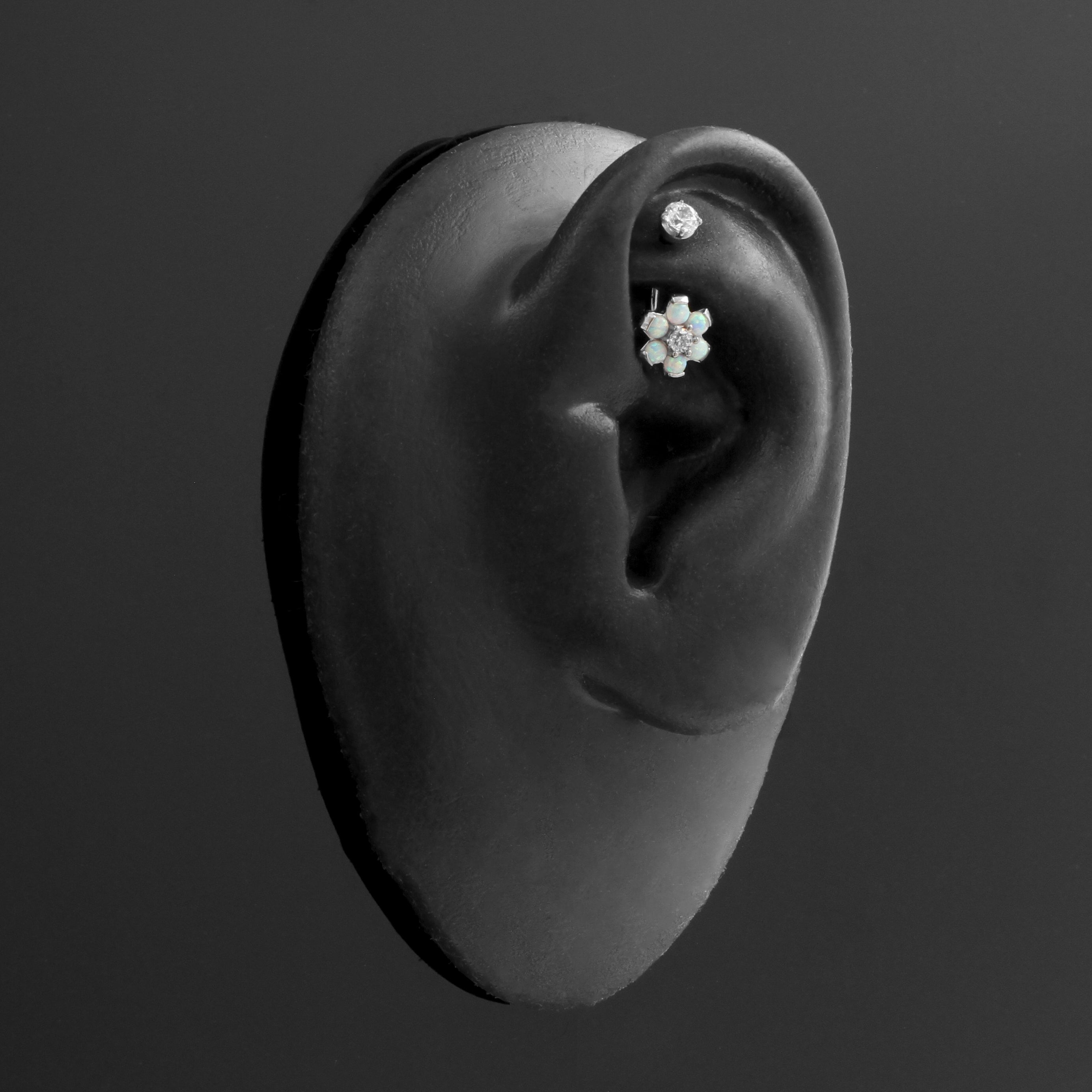 Surgical Steel Opal Zirconia Flower - Rook Piercing White Opal