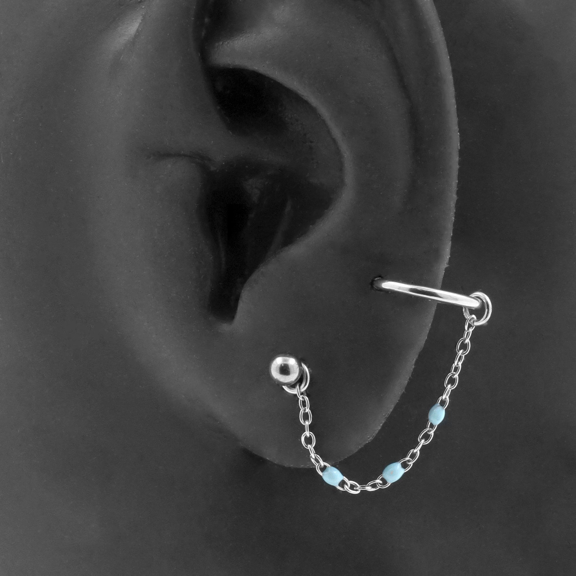 Upgrade your piercings or make your ear party look extra special: our Piercing Chain will do the job perfectly! This lovely piercing chain is made of surgical steel and suitable for click rings, earring, piercing studs and other piercing rings with a thickness up to 1,6 mm. Our Piercing Chain is simple to use: open your click ring, attach the chain to your jewelry and close your click ring, earring or stud again. Done! Our Piercing Chains are available in different designs to create endless jewelry combinations for lots of different piercings. Perfect for ear piercings, nipple piercings and cartilage piercings.
