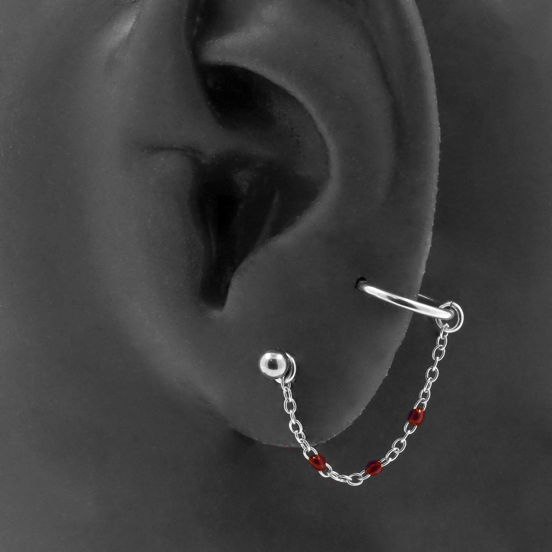 Upgrade your piercings or make your ear party look extra special: our Piercing Chain will do the job perfectly! This lovely piercing chain is made of surgical steel and suitable for click rings, earring, piercing studs and other piercing rings with a thickness up to 1,6 mm. Our Piercing Chain is simple to use: open your click ring, attach the chain to your jewelry and close your click ring, earring or stud again. Done! Our Piercing Chains are available in different designs to create endless jewelry combinations for lots of different piercings. Perfect for ear piercings, nipple piercings and cartilage piercings.