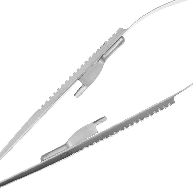 Looking for the perfect tool to make changing your piercing jewelry easier? Check out our Piercing Tweezers for piercing labret studs! This easy to use piercing tool features a sleek design that's perfect for those hard to reach piercing spots. The specially designed front clasps around labret studs easily and securely, making changing your piercing jewelry a lot smoother. Perfect for changing tragus piercing jewelry and many others. The tweezers are locked and released with a gentle clicking mechanism. The built in leaf spring distributes tension evenly so you won't pinch your jewelry too hard. Made of high quality surgical steel.