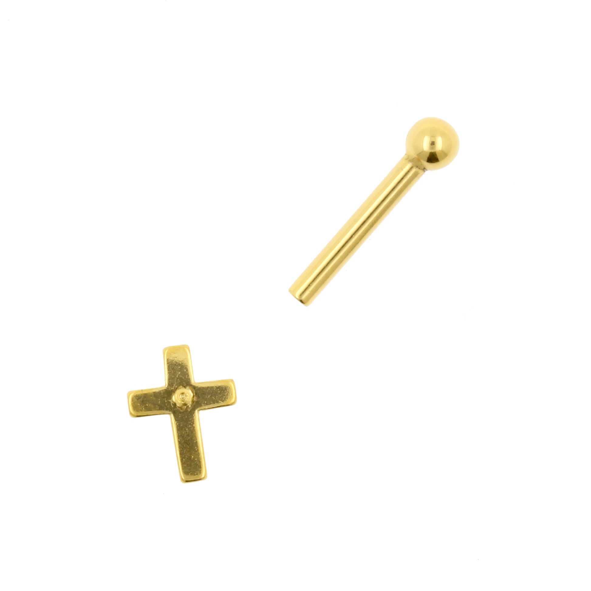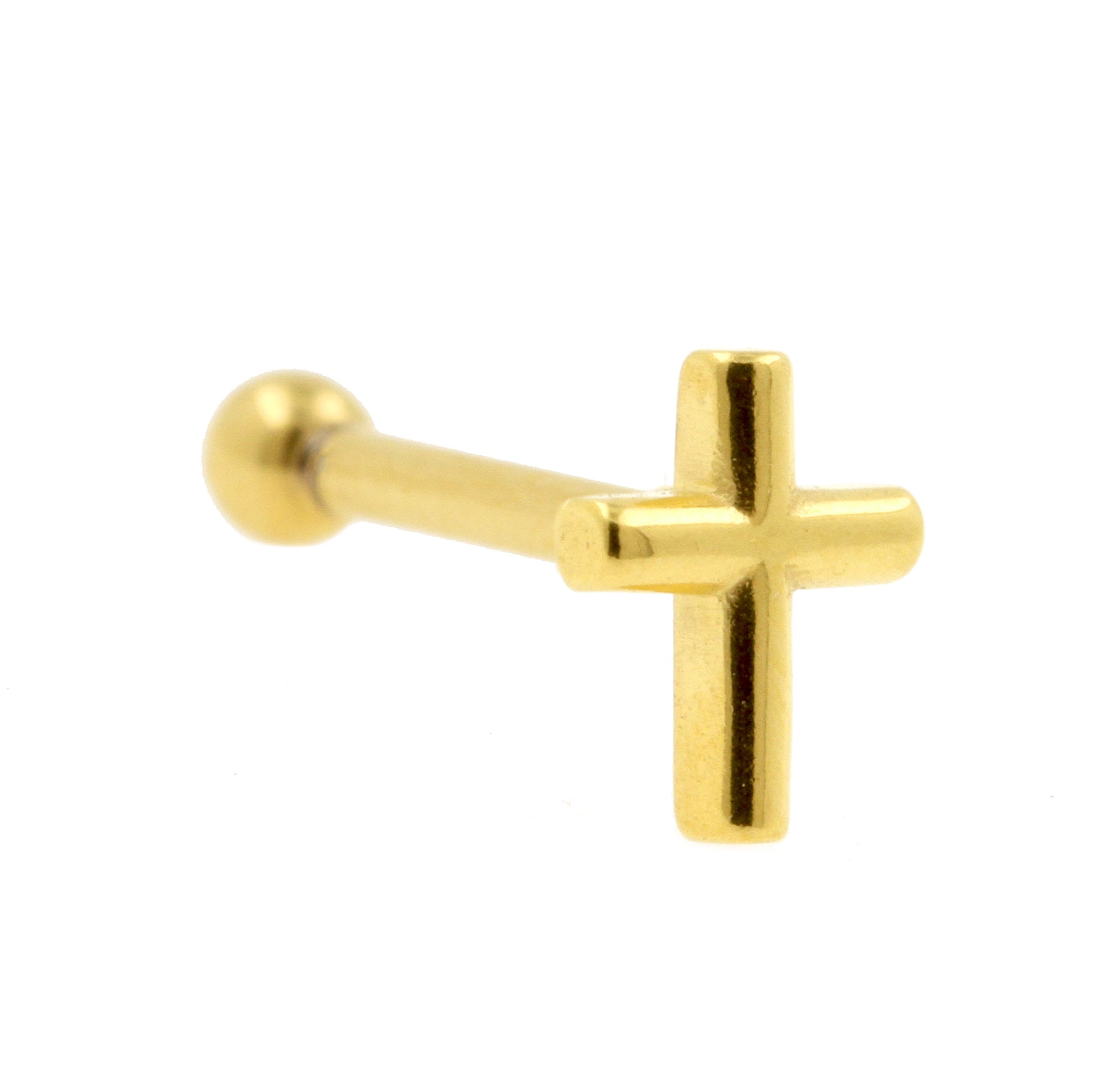 Make your tragus piercing shine! Pretty Tragus Barbell made of gold P.V.D. coated surgical steel with a little cross at the front. The barbells are fitted with 0,8 mm internal thread and unscrew at the front, making these barbells perfect for tragus piercings. Simply detach the front, insert via the back of your tragus and reattach the internally threaded accessory. Suitable for 1,2 mm piercings and available in different lengths. Also suitable for helix piercings and other piercings, of course!