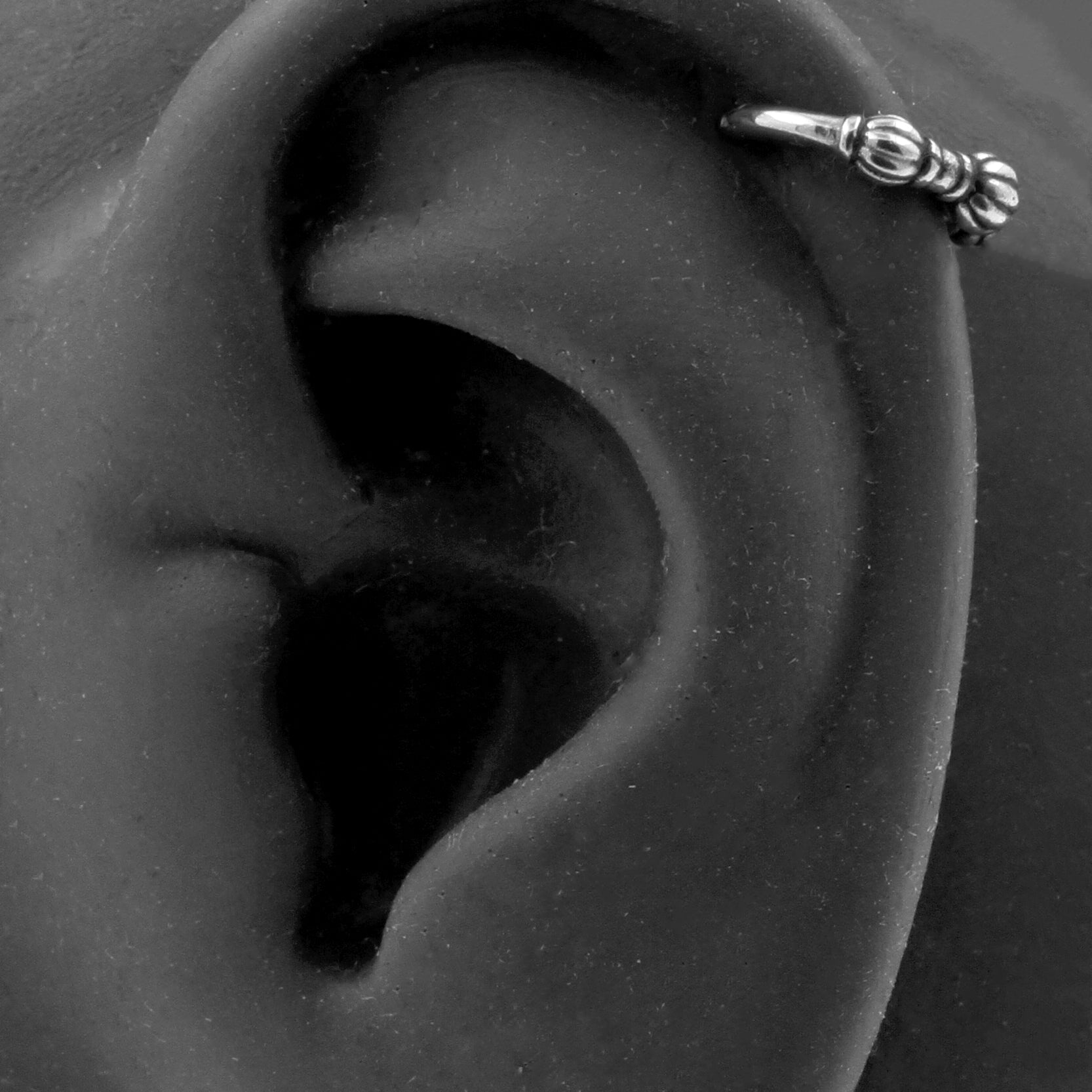 High quality piercing ring with easy to use clicking mechanism! This beautiful ring is features beautiful, vintage style decoration and has a curved stem. The rings suitable for all kinds of piercings, giving them an extra fancy look in an instant. Made of high quality surgical steel with a mirror finish and available in different colors and designs.