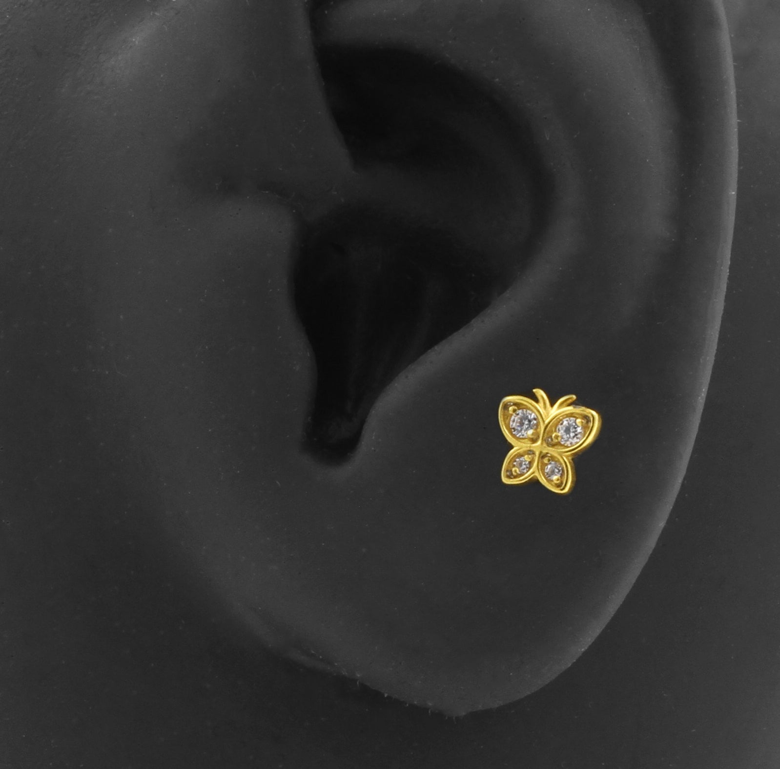 Surgical Steel Zirconia Labret Stud - Butterfly Gold