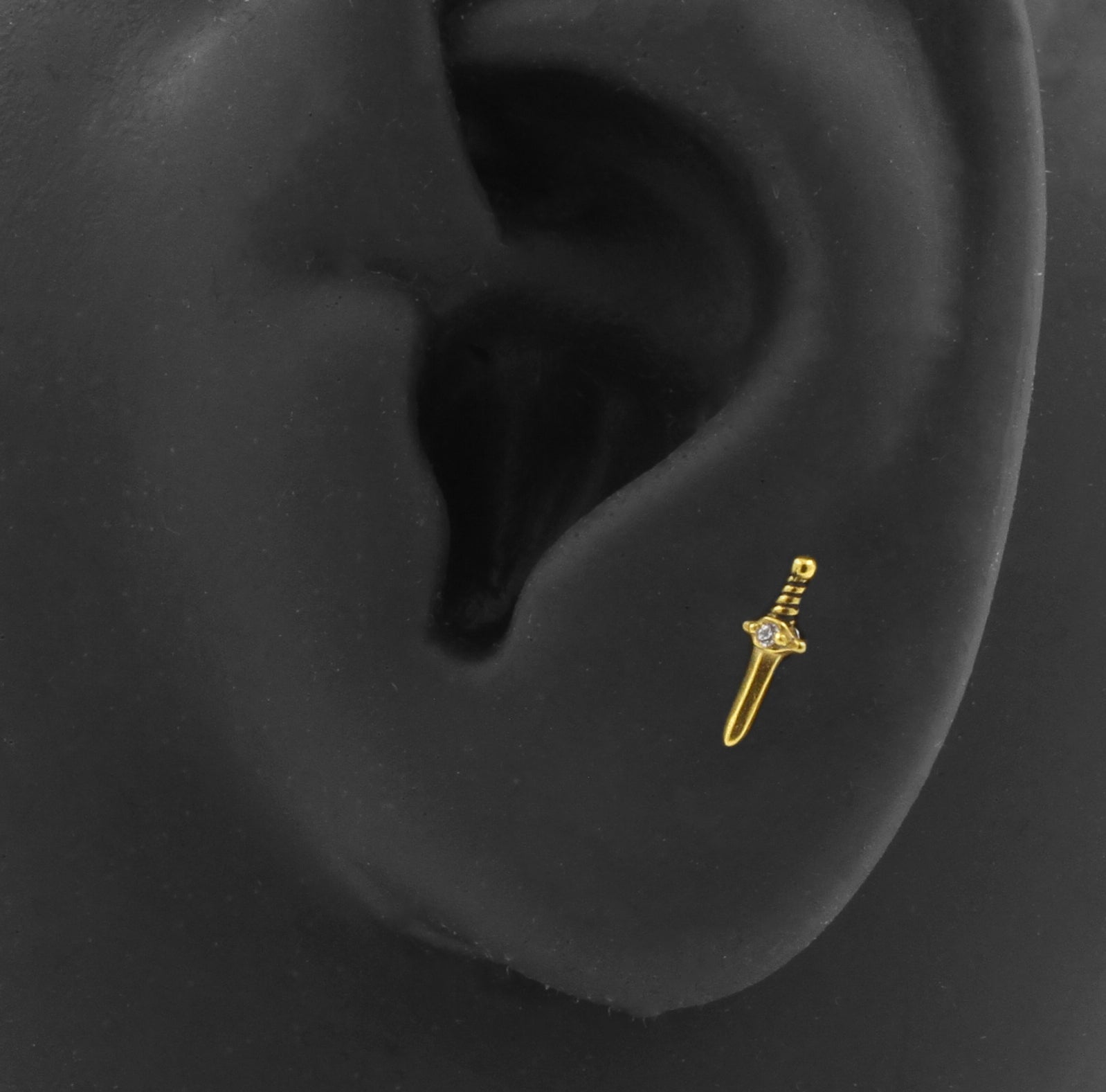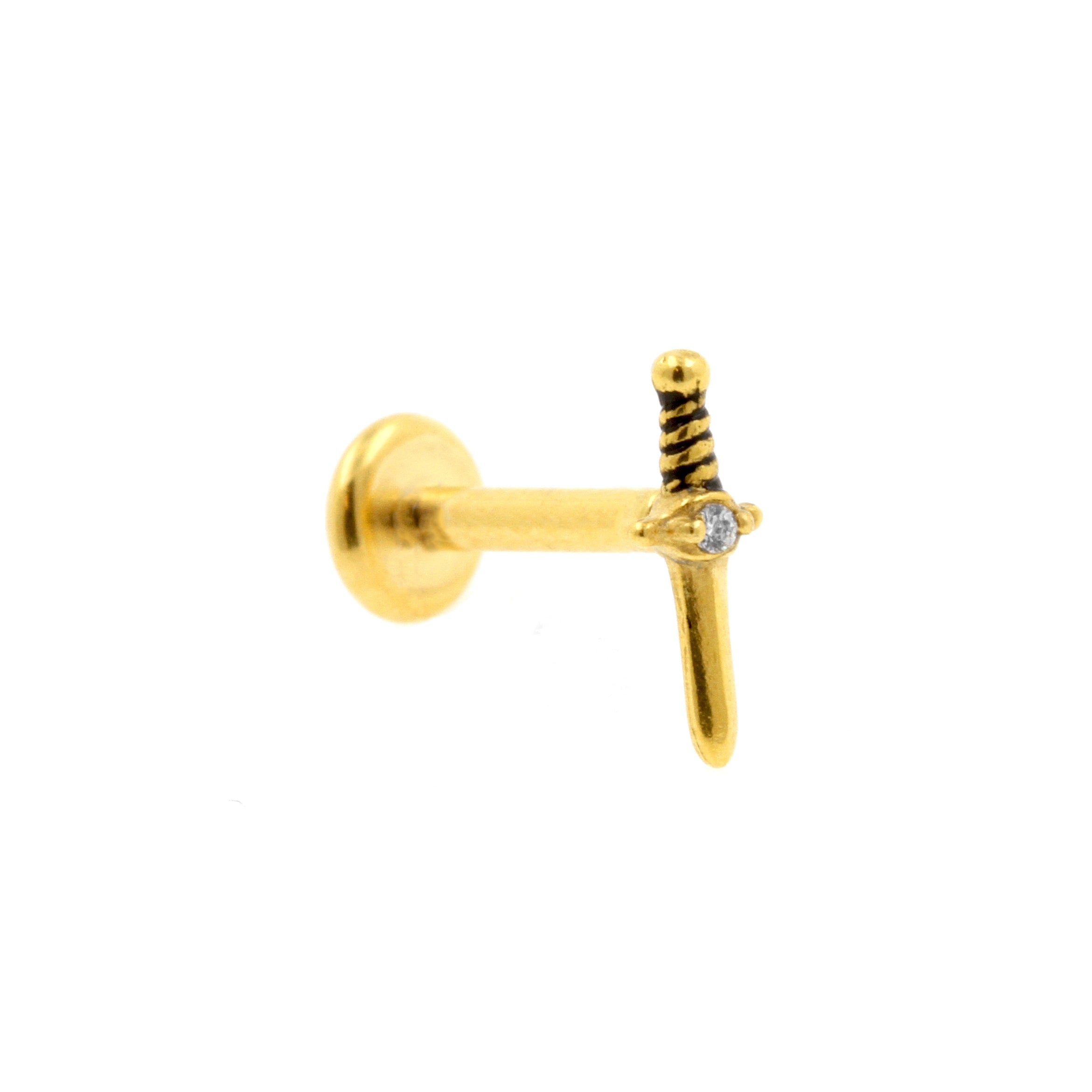 Surgical Steel Zirconia Labret Stud - Dagger Gold