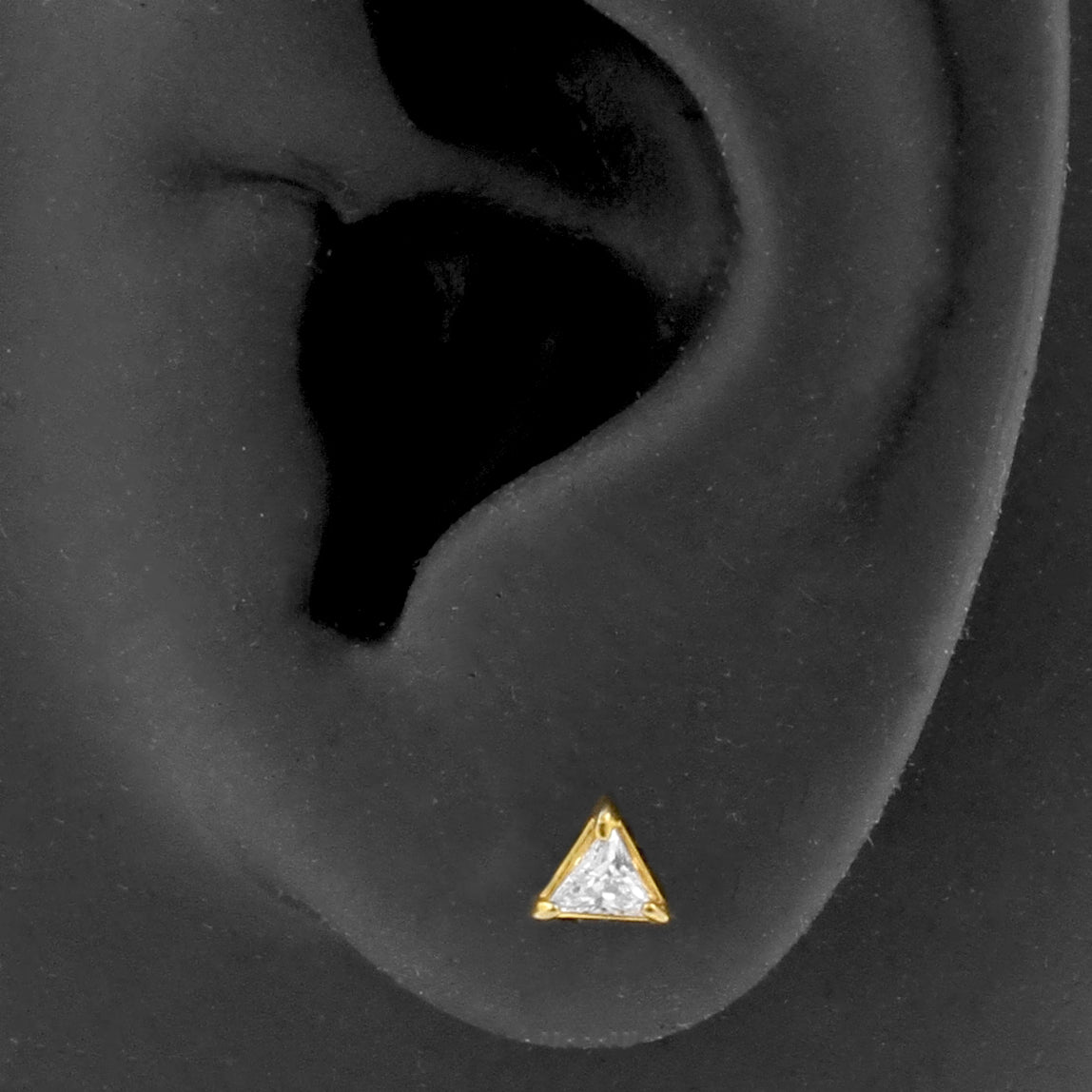 Surgical Steel Zirconia Triangle Ear Studs Gold