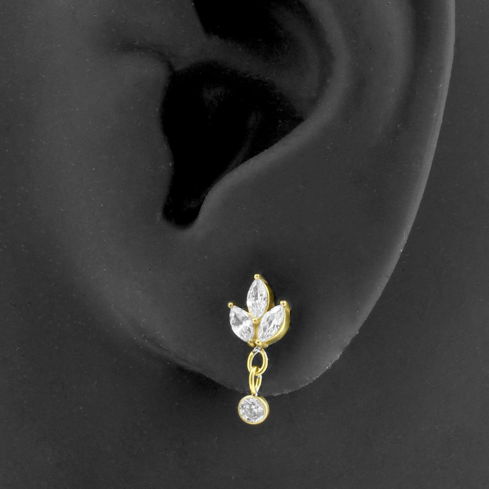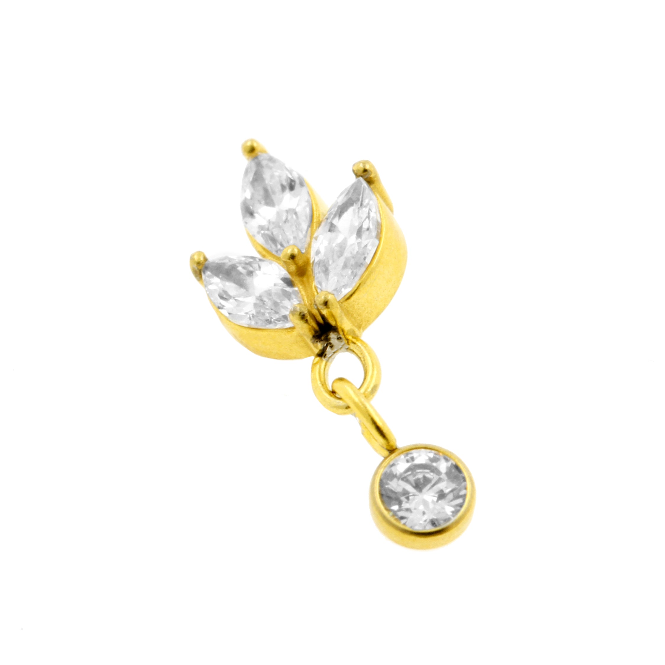 Surgical Steel Zirkonia Marquise With Charm Gold