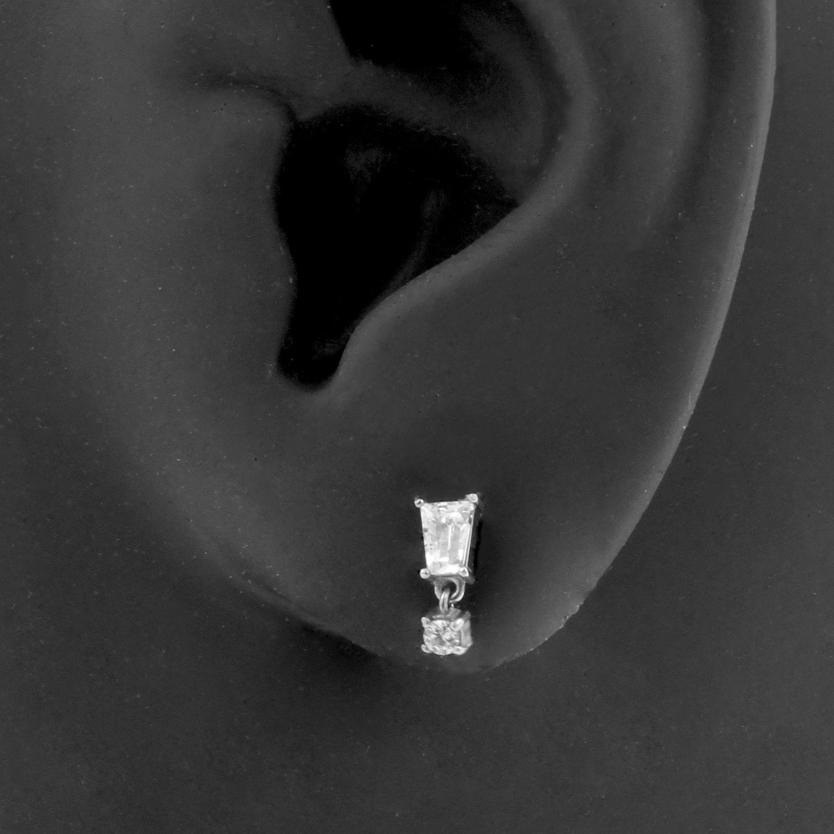 Surgical Steel Zirkonia Trapezoid With Charm Silver