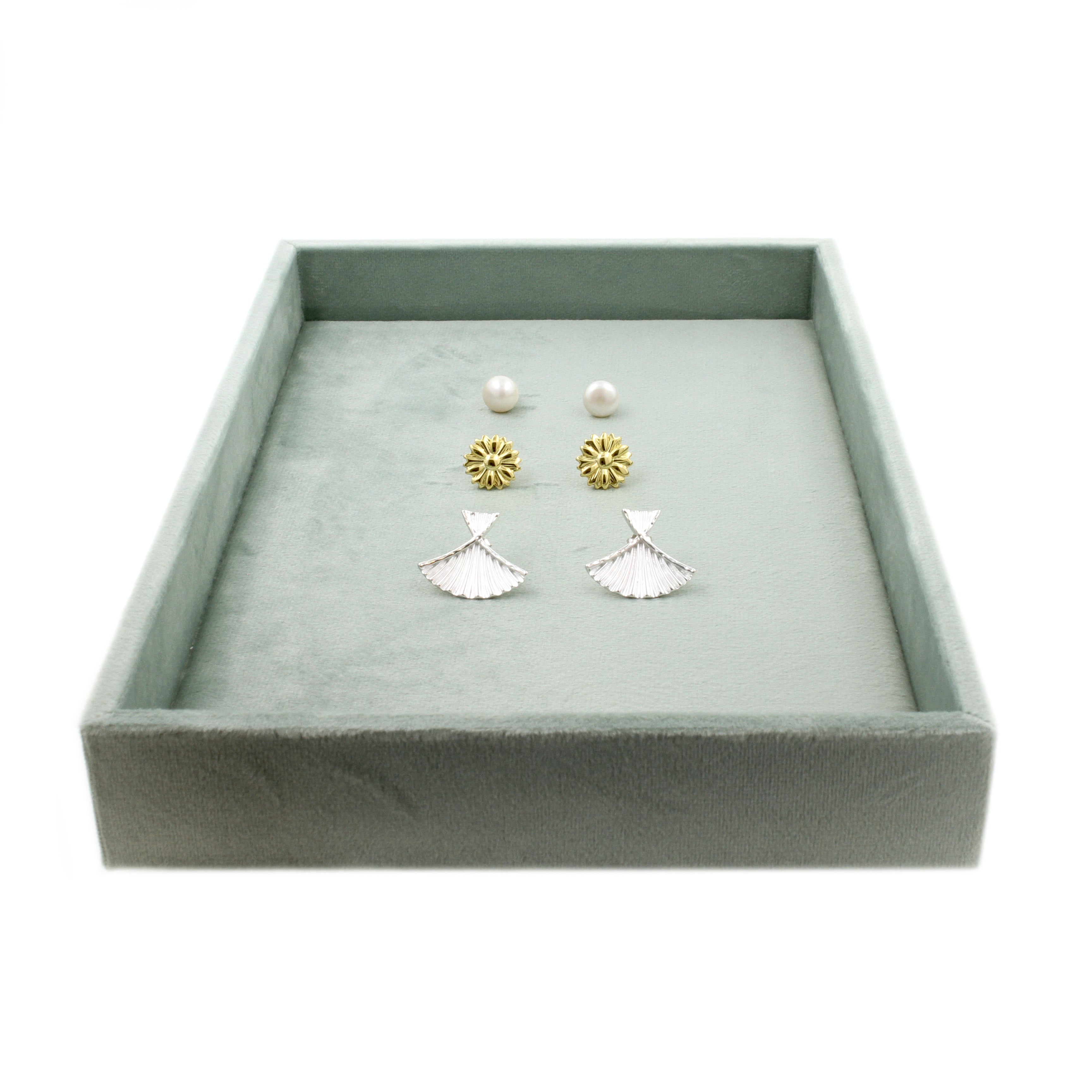 Beautiful velours display, for presenting your jewelry collection to your customers. This lovely display will look great on any counter or display cabinet. Size: 242 mm x 162 mm x 35 mm. Suitable for piercing jewelry, earrings and all kinds of other jewelry.