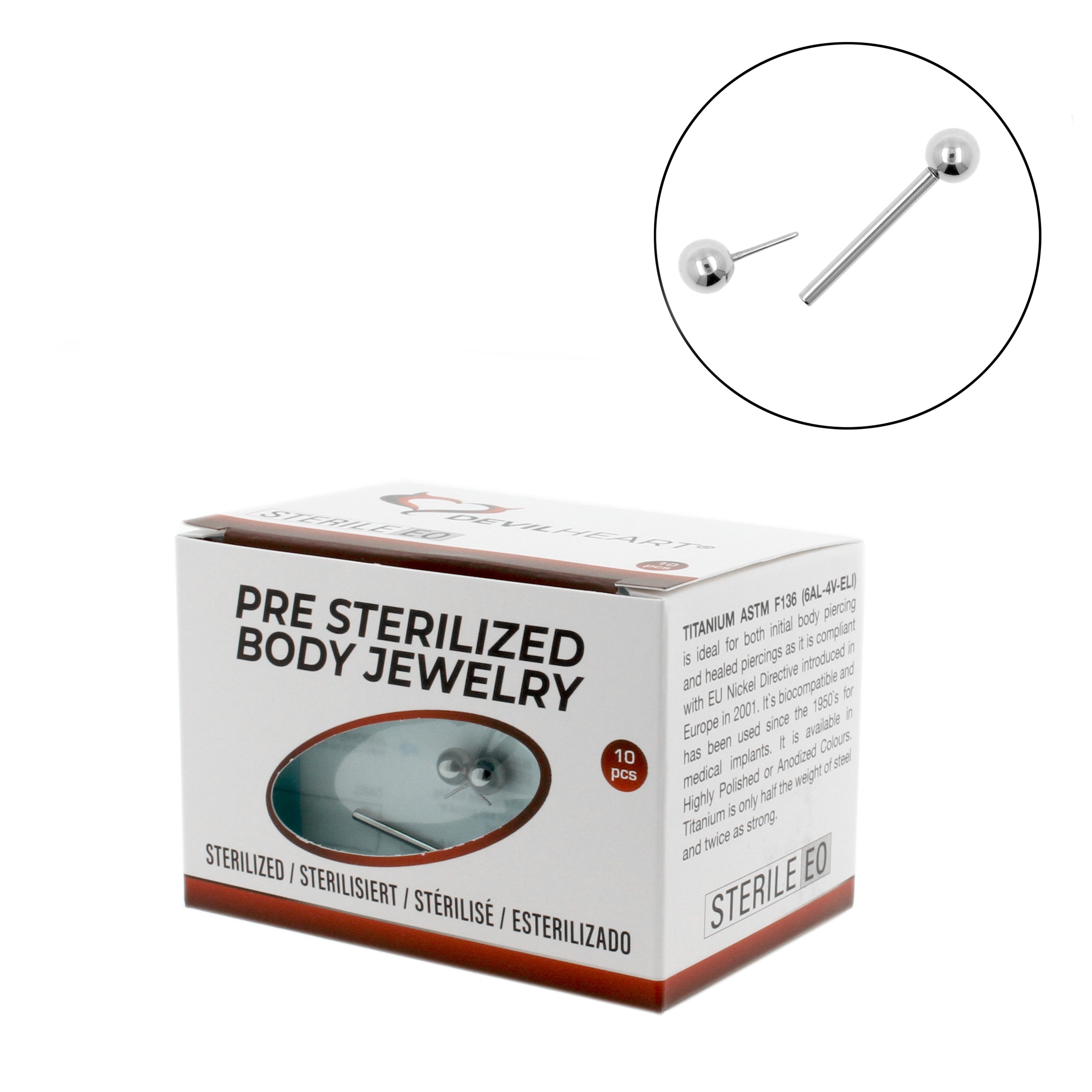 Comfortable, threadless barbell made of titanium. Our threadless piercing jewelry is made of the highest quality titanium and easy to exchange and compatible with our threadless accessories. Each piece of jewelry is packed per piece in a sterilized and sealed package. Each box contains 10 pieces of jewelry. Ready to be used in your piercing procedures!
