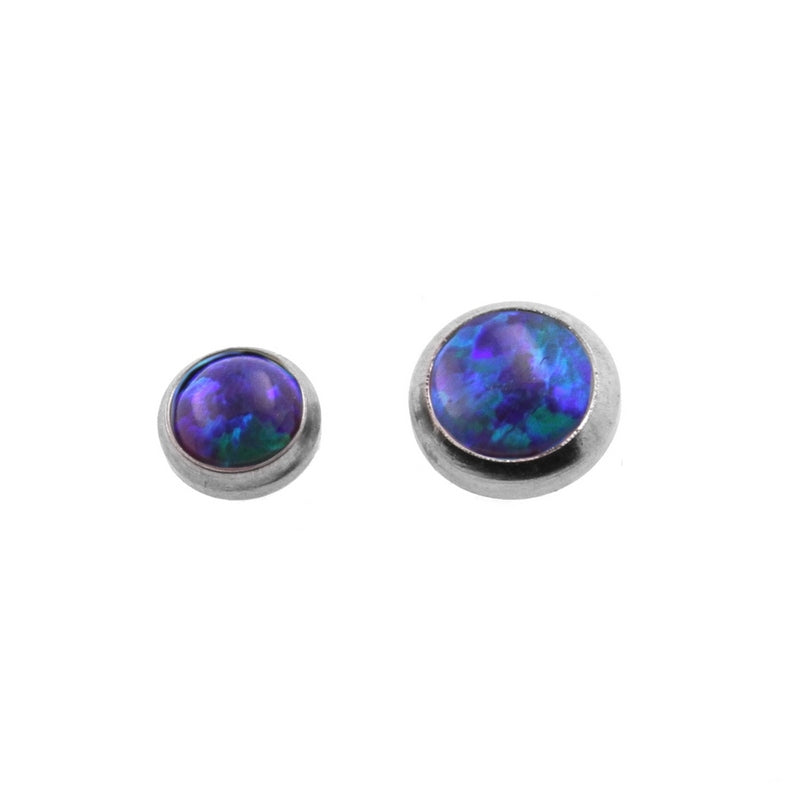 Make 'm shine! Turn your  piercings into something stunning with these beautiful Cabochon Opal Discs. These titanium discs are set with cabochon-cut, synthetic opal. The rounded cut makes the opalescent colors really stand out, turning your piercings into little eye-catchers. These Opal Discs are suitable for 1,2 mm internally threaded jewelry (the threading itself measures 0,8mm). Available in different diameters and 5 different colors.