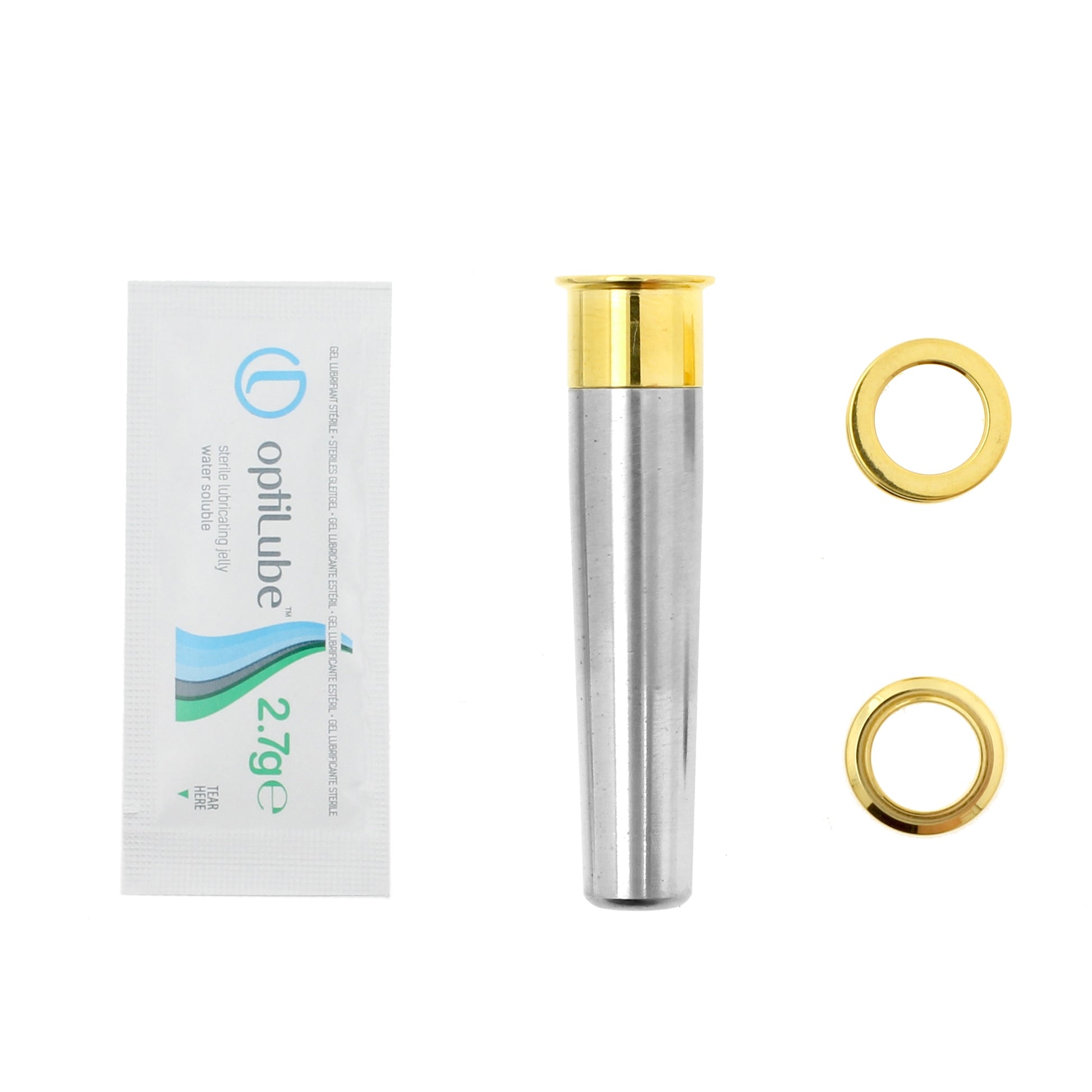 Earlobe stretching made easy with this kit! Inside the kit you'll find two titanium tunnels with a matching steel taper which can be screwed to the tunnels. Together with the supplied True Jelly (sterile stretching gel) you'll easily stretch your lobes and bring the tunnels in place in one single movement. After this you simply unscrew the taper, close the tunnels and wait until your lobes are fully healed. Don't forget, stretching must be done slowly and without any pain. Stretch in small increments with a maximum of 1 millimeter each time. Wait 4 to 6 weeks until you stretch again.