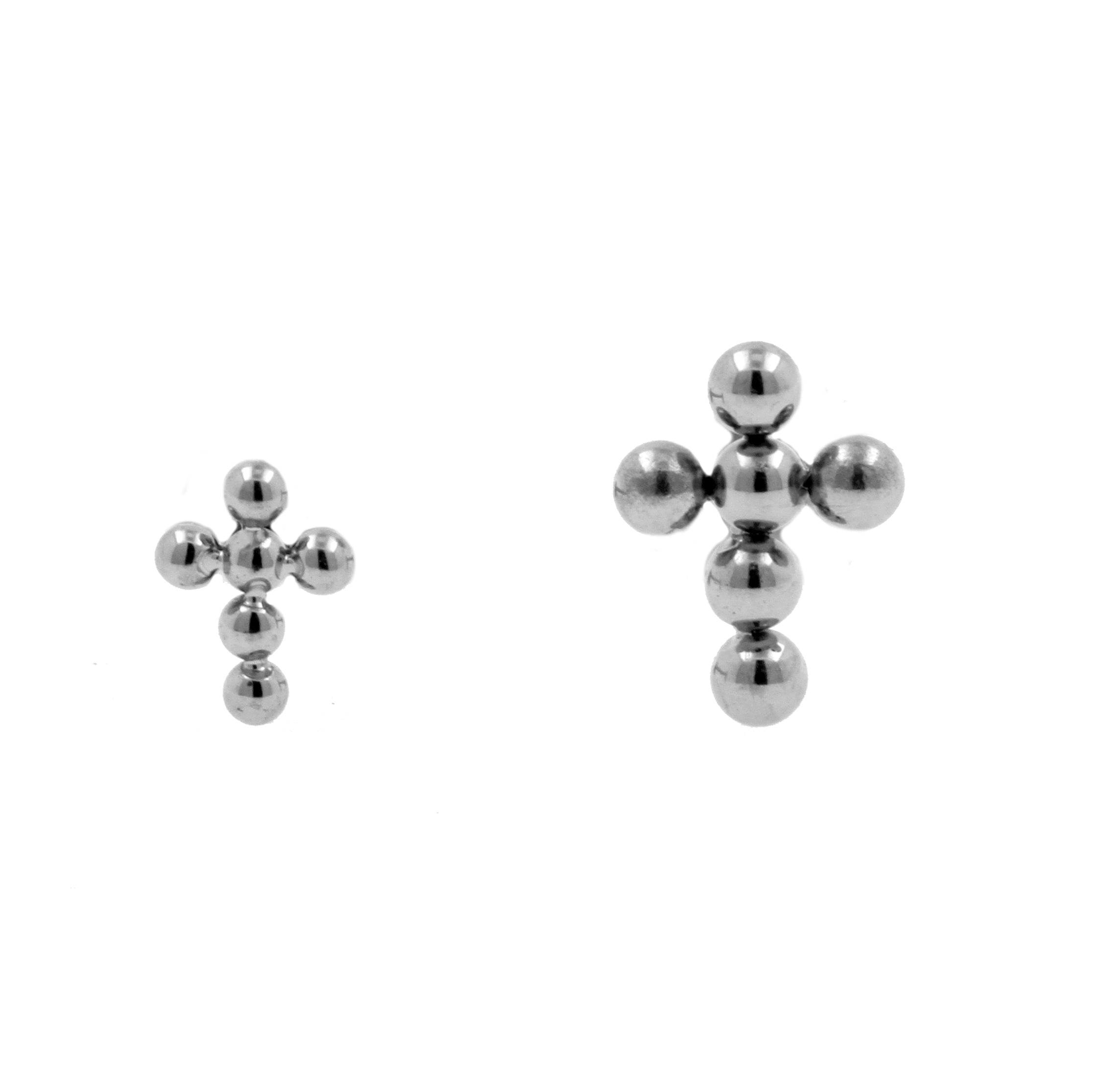 Affordable quality! These beautiful titanium Cross Cluster piercing accessories are made of titanium and suitable for internally threaded piercing jewelry. Titanium is light and contains no nickel: perfect for troublesome piercings. Available in different diameters and perfect for all kinds of piercings! (Extra info: the thread of the accessory itself measures 0,8 mm in thickness and is suitable for 1,2 mm All Over Piercings internally threaded piercing jewelry).