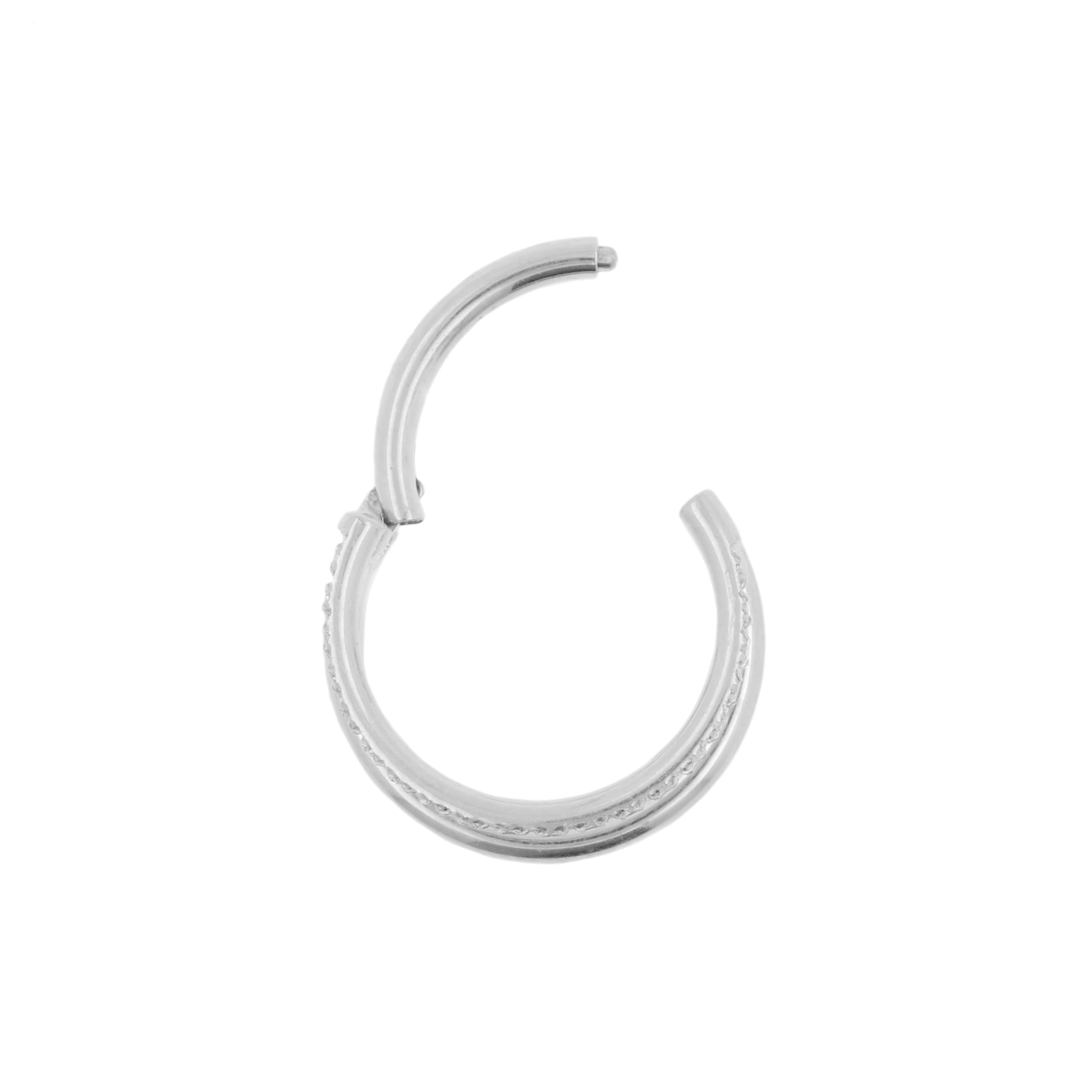 Elegant and timeless — this double click ring creates the look of two stacked rings without the need for multiple piercings. The upper ring is set with clear cubic zirconia, while the smooth lower ring adds balance and sophistication. Made from high-polished titanium – lightweight, strong, and hypoallergenic – for lasting comfort and a sleek appearance.