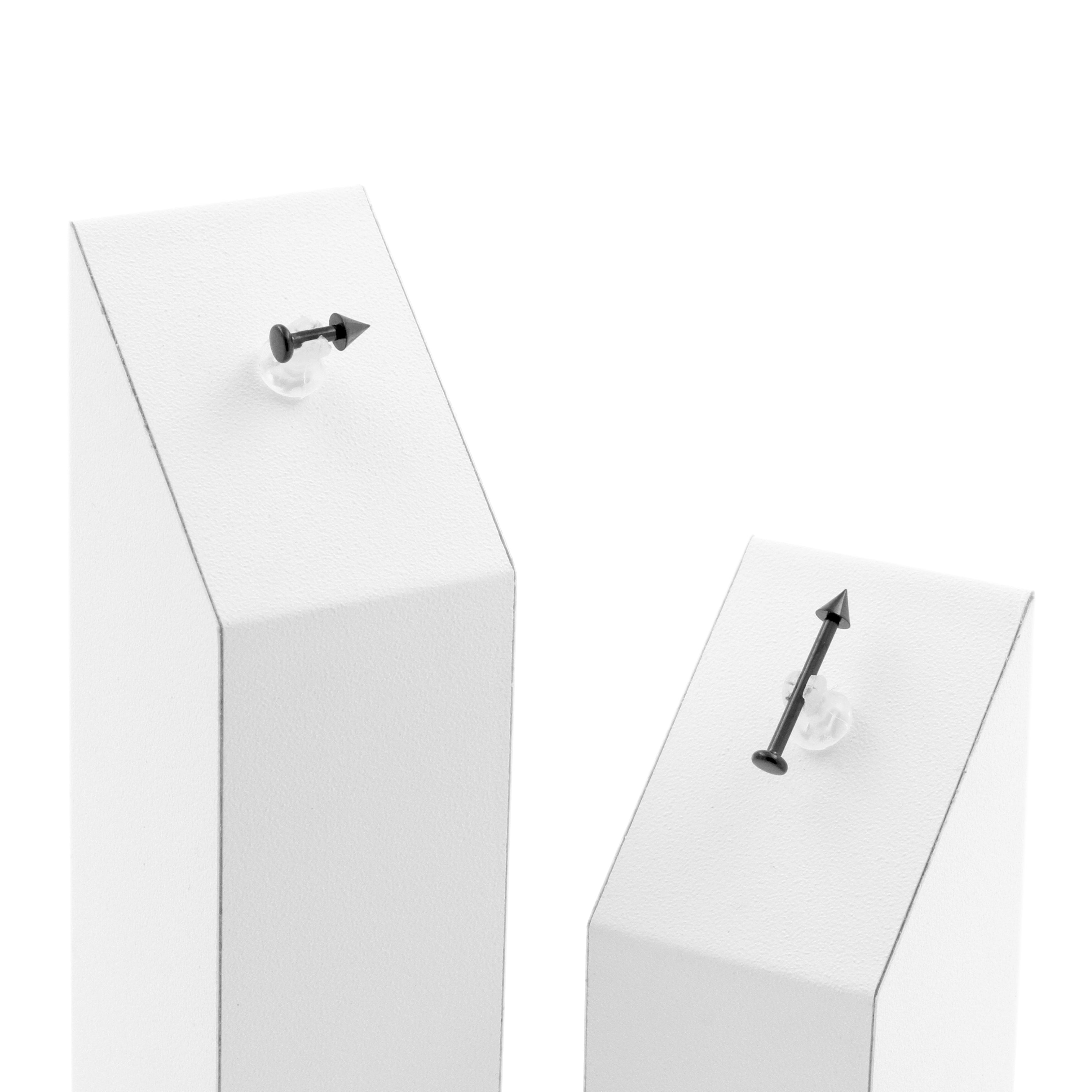 Dark, sleek, and unmistakable – the spike is back in style. This titanium flatback stud comes with a deep black P.V.D. coating for maximum impact. The flat back sits comfortably and won’t press into your neck or head when lying down. Scratch-resistant, colorfast, and ready for daily wear. A complete piece that adds instant attitude to your ear stack.