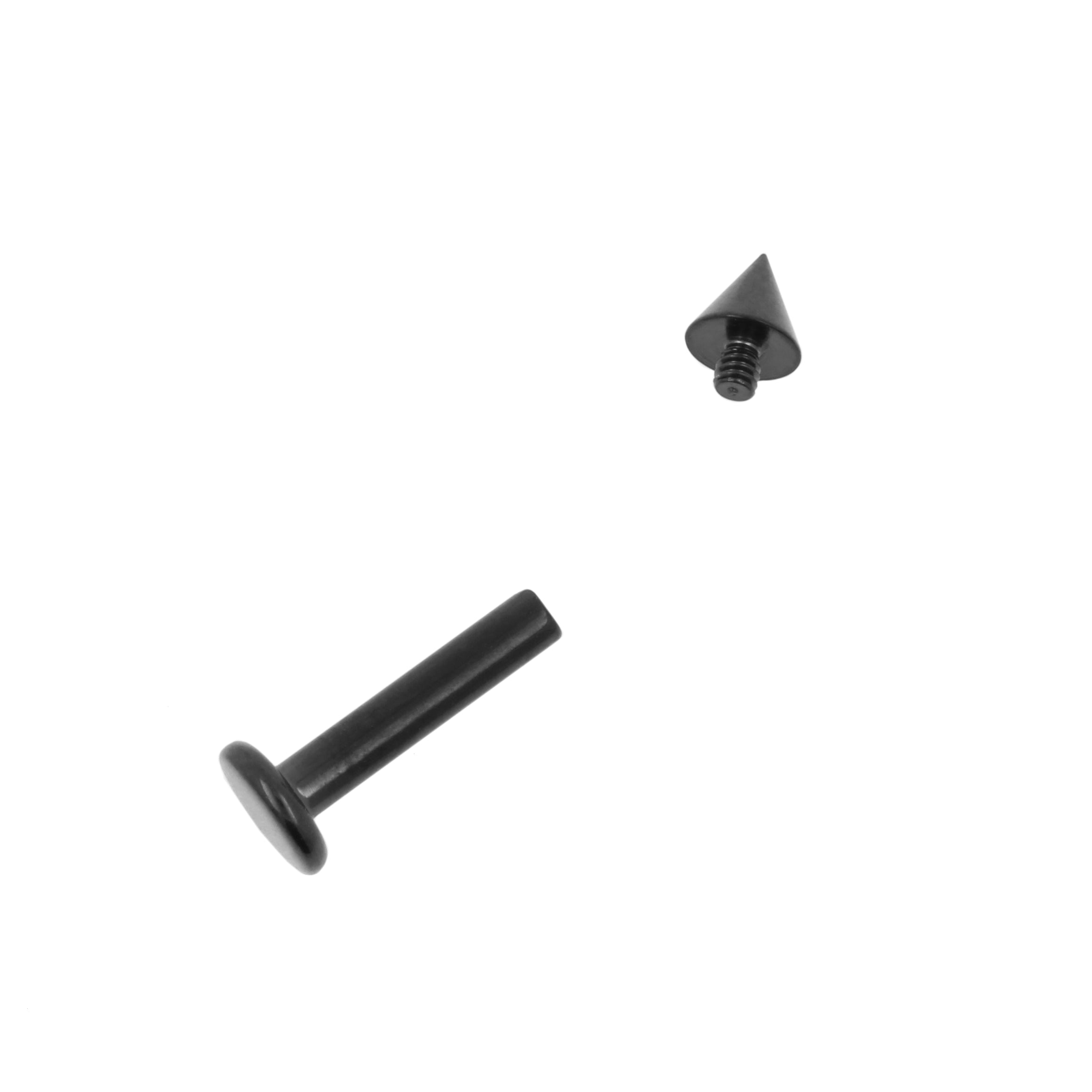 Dark, sleek, and unmistakable – the spike is back in style. This titanium flatback stud comes with a deep black P.V.D. coating for maximum impact. The flat back sits comfortably and won’t press into your neck or head when lying down. Scratch-resistant, colorfast, and ready for daily wear. A complete piece that adds instant attitude to your ear stack.