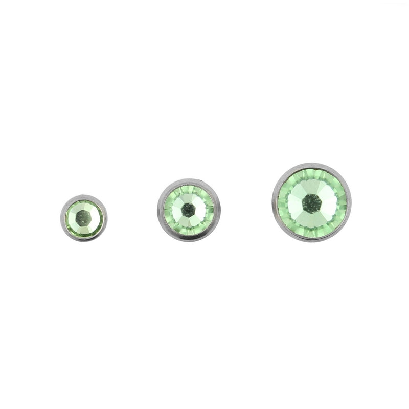 Spice up your microdermal! These gorgeous jewelled flat discs will add a very elegant touch to your microdermal anchors. Each disc made of high quality titanium and set with a faceted crystal, available in different colors. The thread of the disc measures 1,2 mm in thickness and is suitable for 1,6 mm internally threaded microdermal anchors. Pick the size you want: small and subtle or perhaps a little larger? We offer them in several sizes, so match up your style!