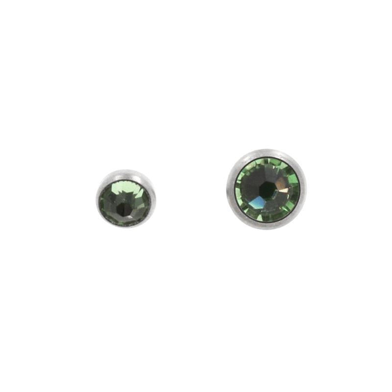 Specially for our internally threaded mini labrets! These beautiful jewelled discs are perfect if you want to change the color of your piercing jewelry or if you need an extra spare disc. The titanium disc is set with a sparkly, faceted crystal. The discs will fit our 1,2 mm internally threaded labrets. The thread of the discs measures 1 mm in thickness. The discs are available in 2 different diameters.