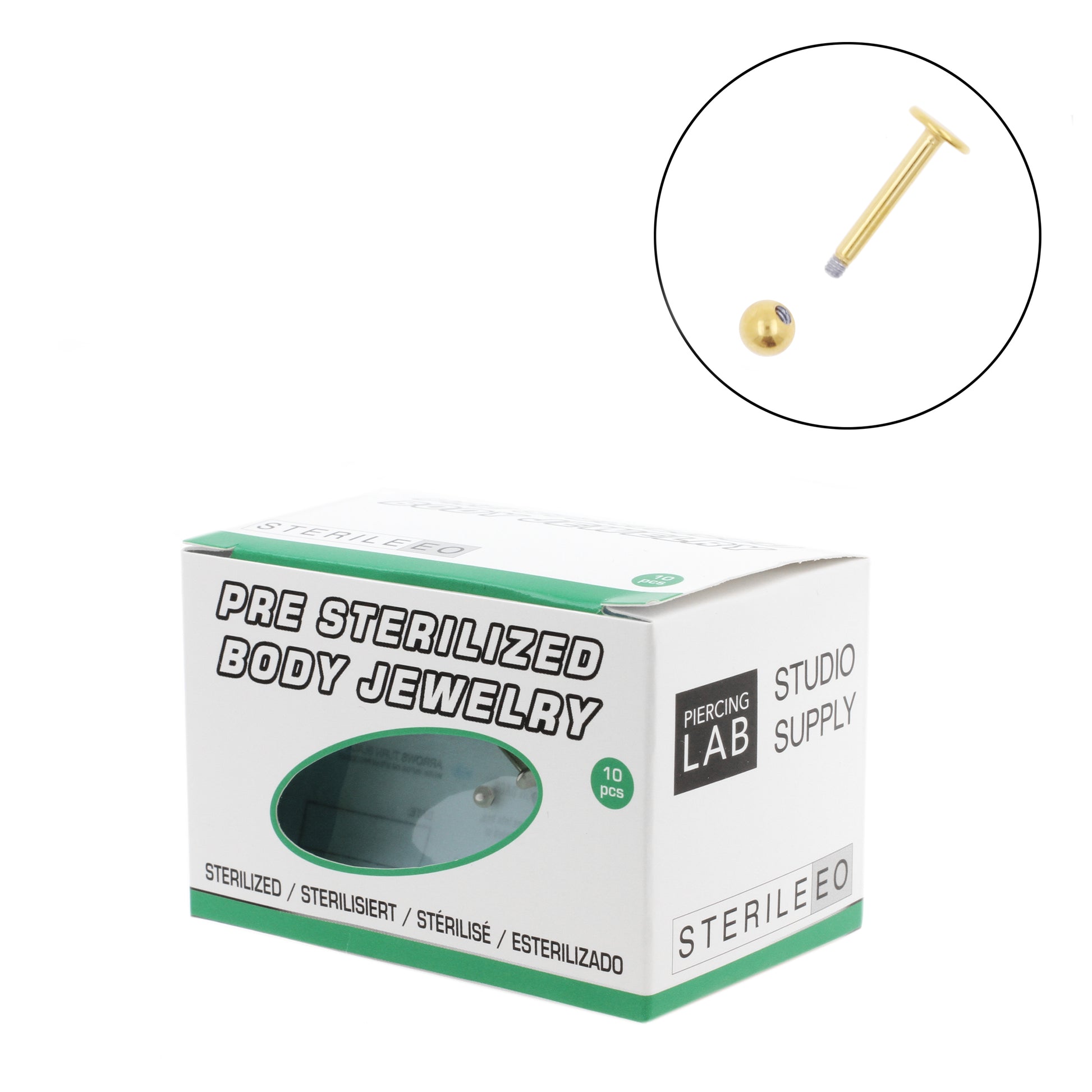 Titanium Labret Stud - Sterilized (10 pcs) Gold