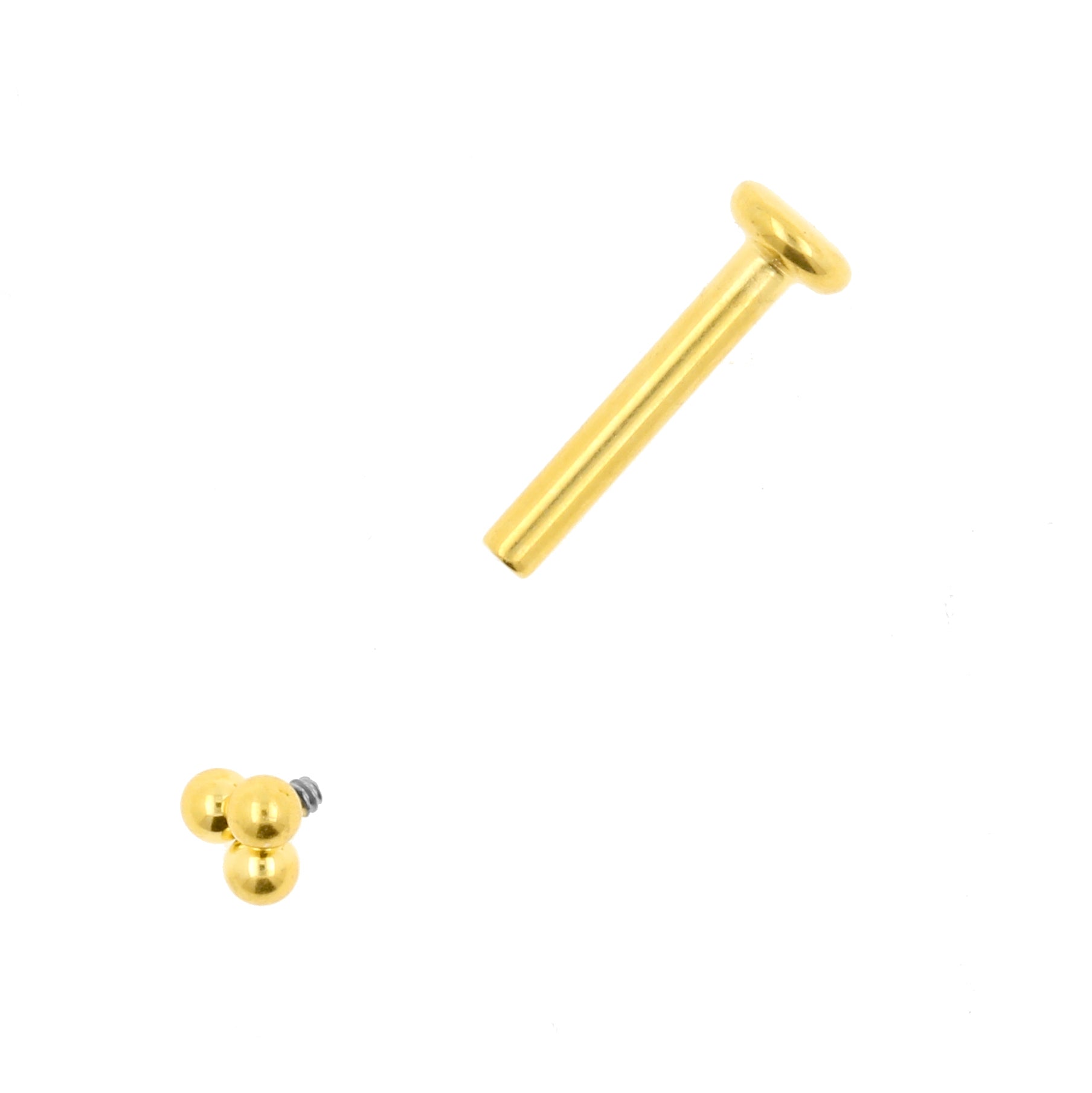 Titanium Labret Stud - Triple Dots 3mm Gold