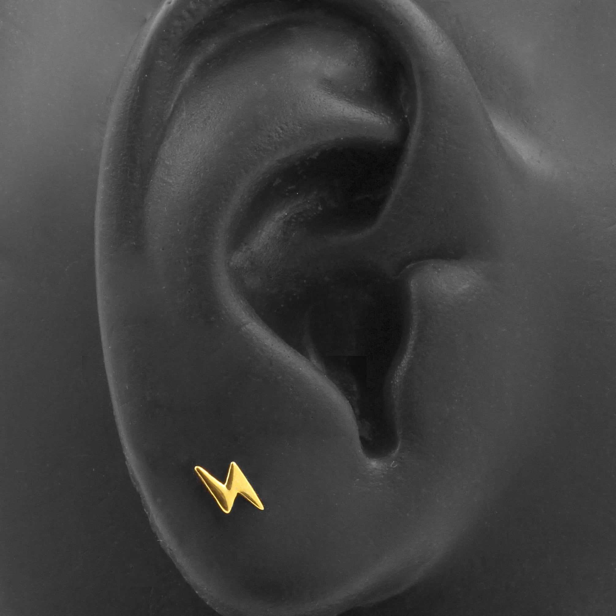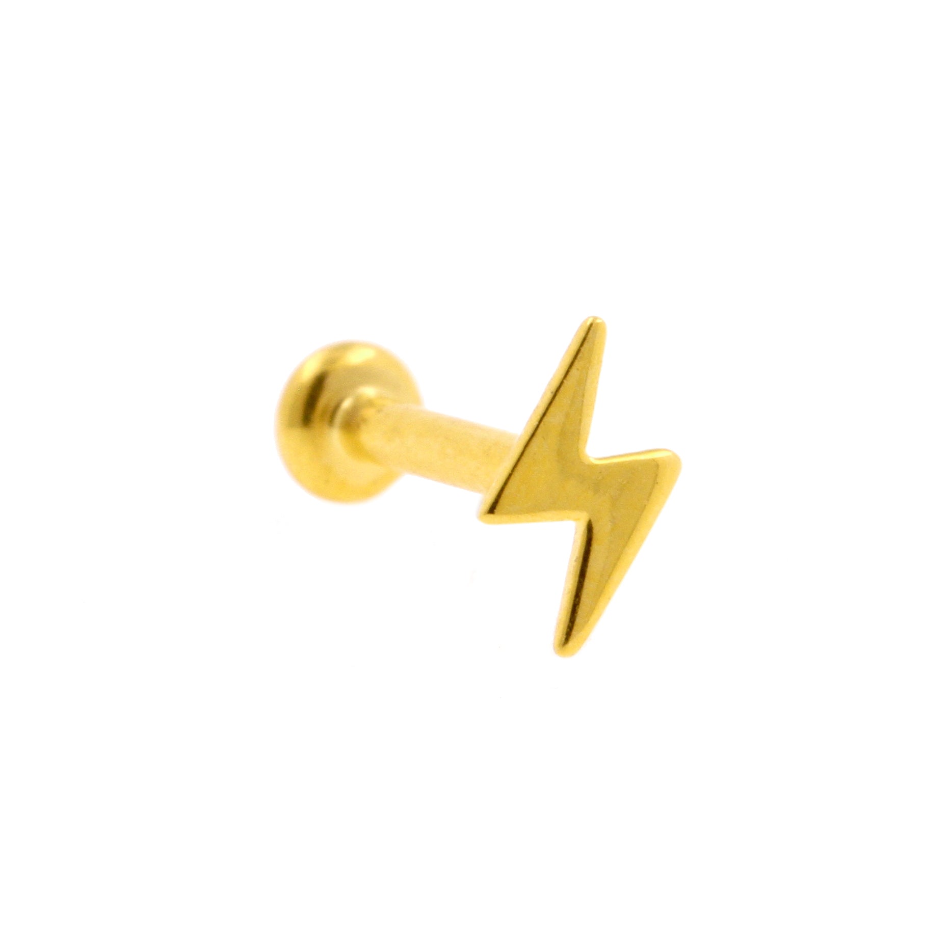 Titanium Labret Stud With Lightning Bolt - Right Gold