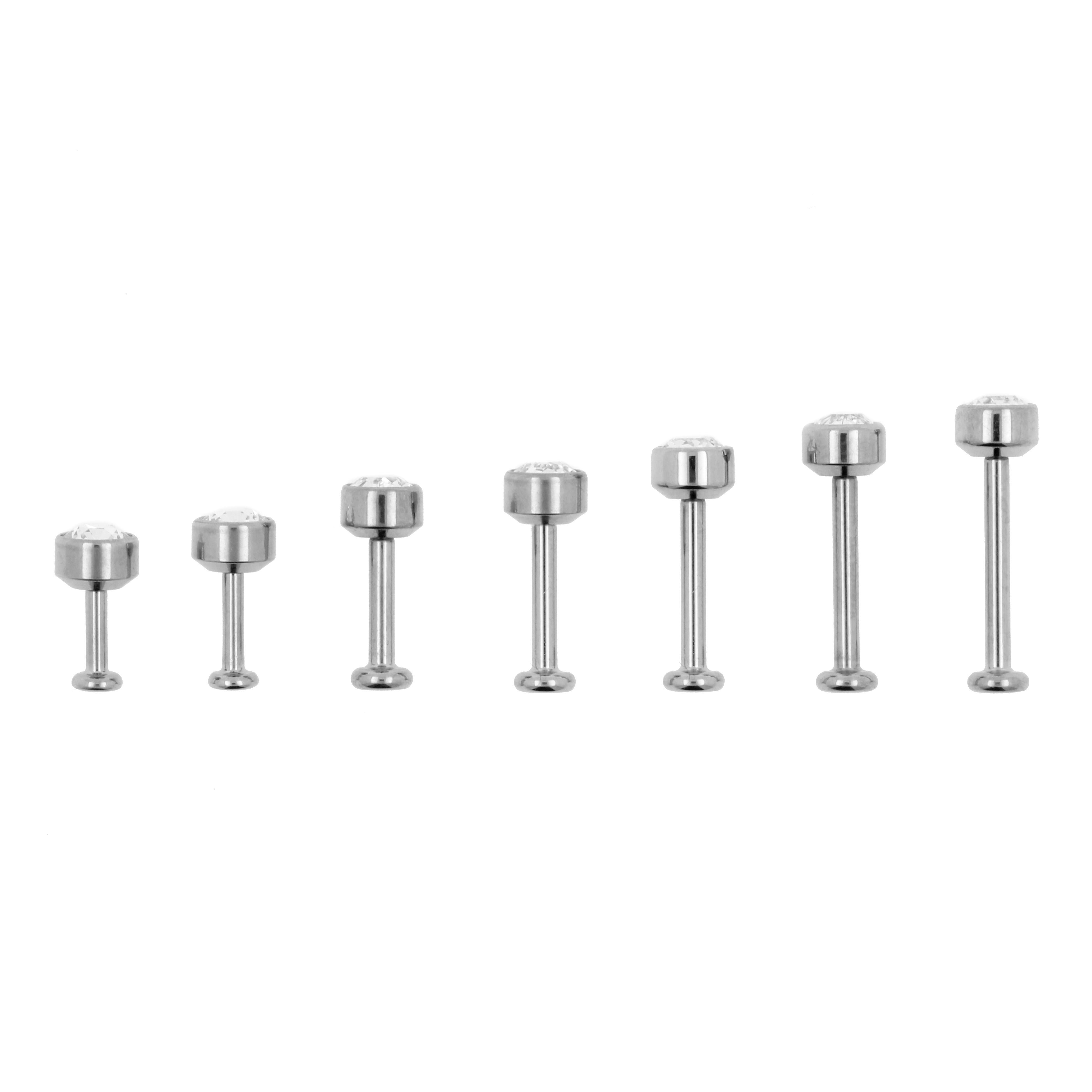 Your most beloved piercings deserve the best jewelry. These titanium labrets are just that kind. With internal threading and a real crystal these are just top quality. (Extra info: the thread of the accessory measures 0,8 mm in thickness and is compatible with other 1,2 mm internally threaded piercing jewelry from our shop.)