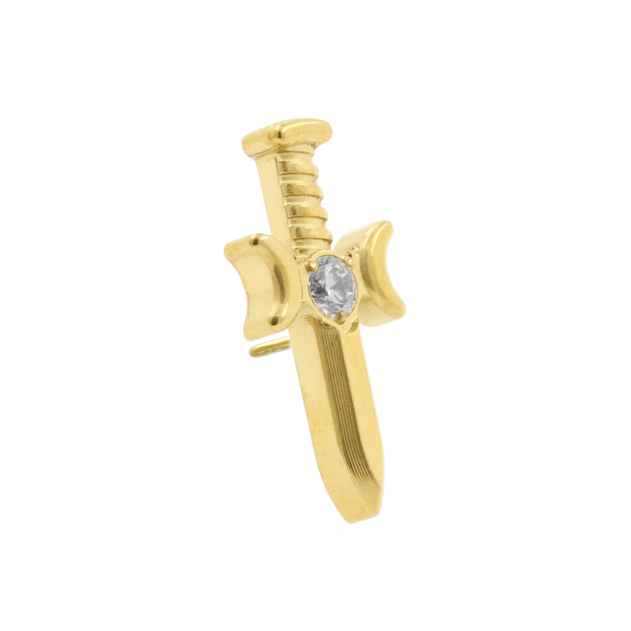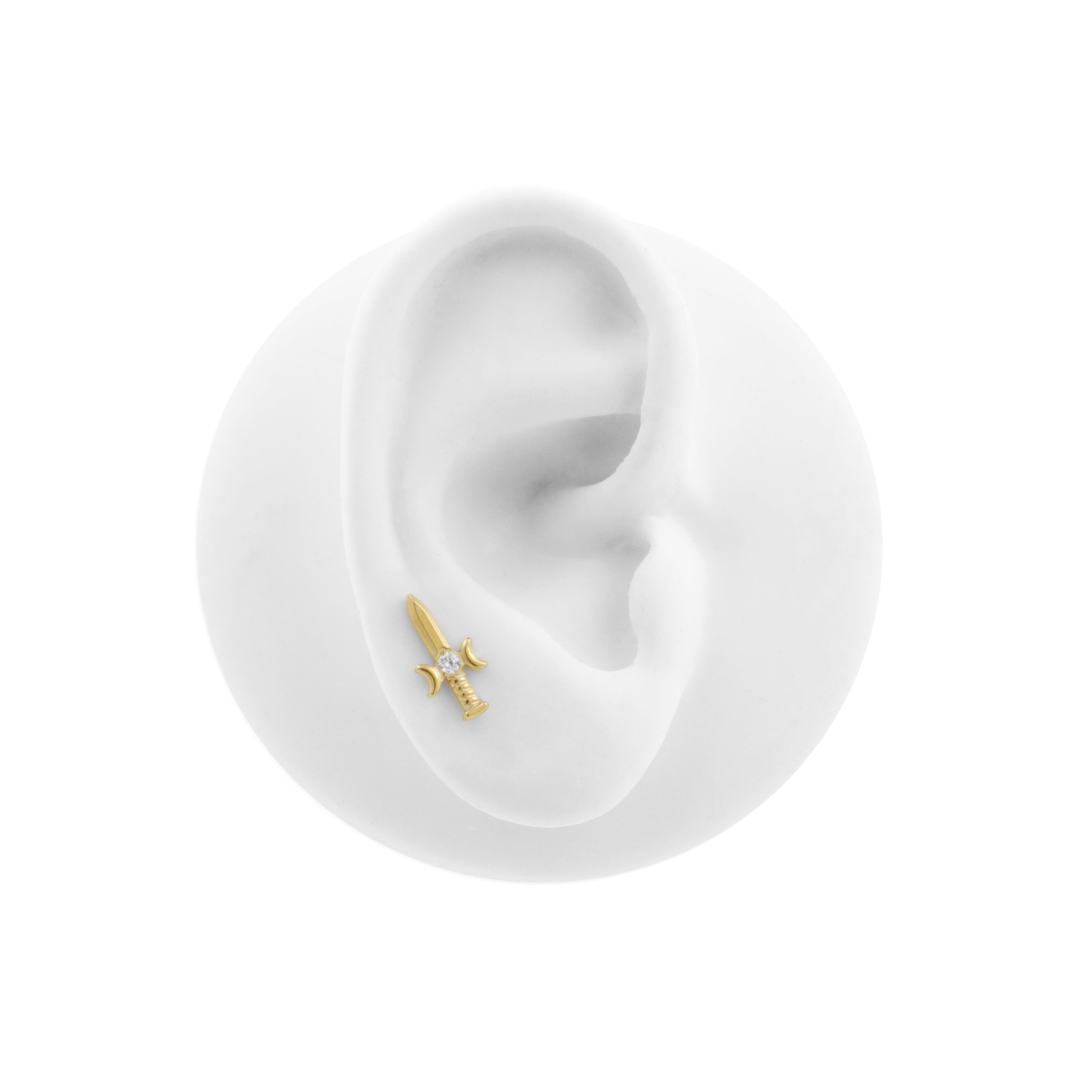Titanium Lunar Dagger Gold instantly adds a stylish touch to your piercing. This Threadless Top is made of Titanium. The threadless system allows you to easily combine this top with all our bars, which we call Threadless Base, for a perfect fit and ultimate comfort.