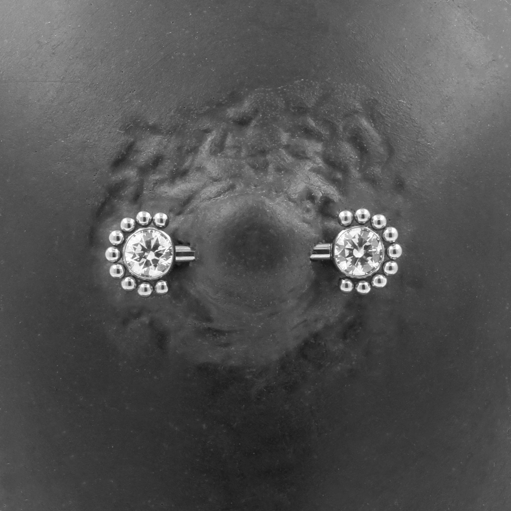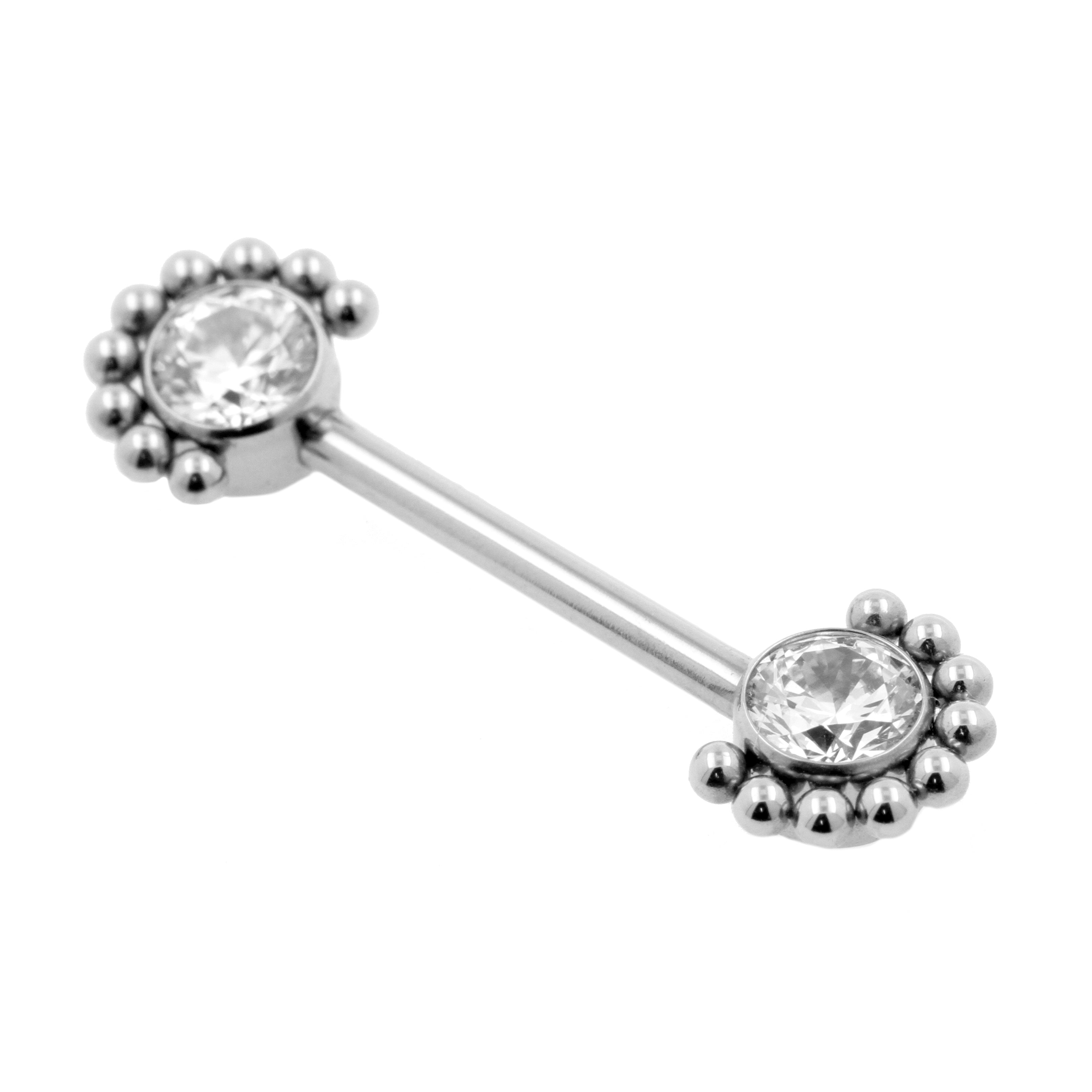 Titanium Nipple Barbell With Zirconia Cluster Silver
