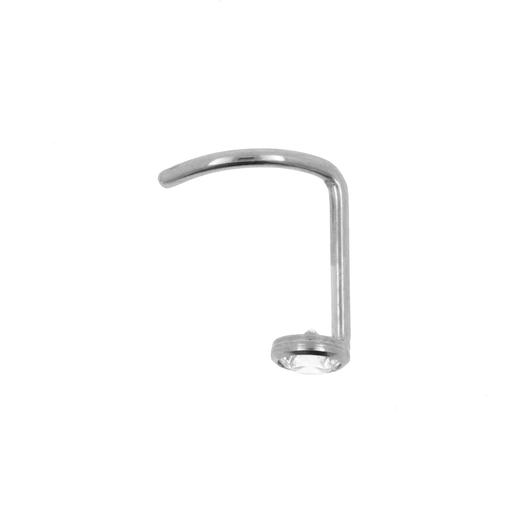 Perfect for nostril piercings! This nosestud is made of high quality titanium and measures 0,8 mm in thickness. The top end is set with a lovely decoration, the stem is curved to keep the jewelry in place once worn in your piercing. A great addition to your nose piercing collection!