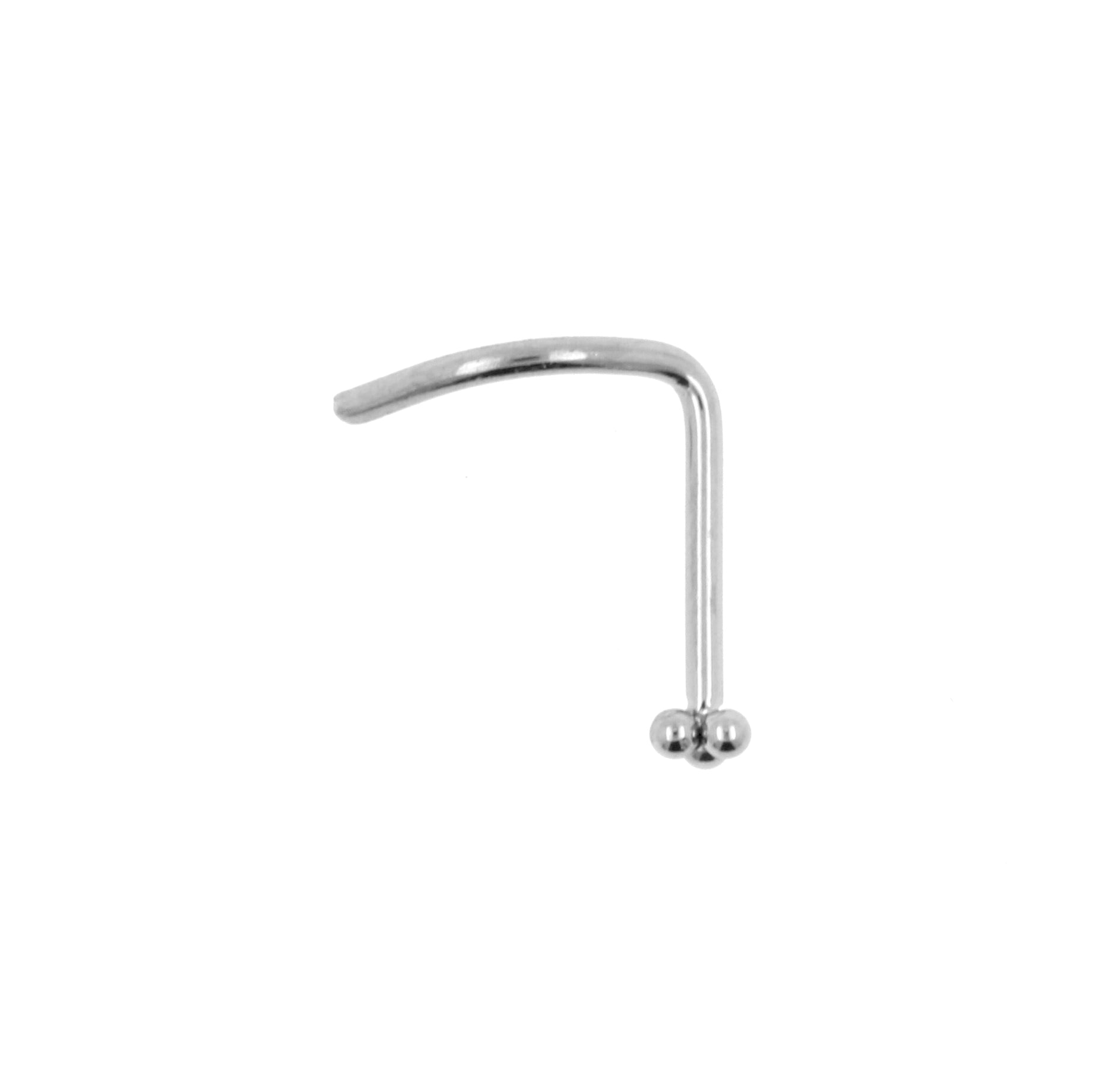 Fancy nosestud for your pierced nose! This nosestud is made of titanium and very suitable for fresh piercings. Fitted with a lovely Triple Dots end for that extra special touch for nostril piercings. The stem is curved to keep the jewelry in place once worn in your piercing. Perfect for pierced nostrils.