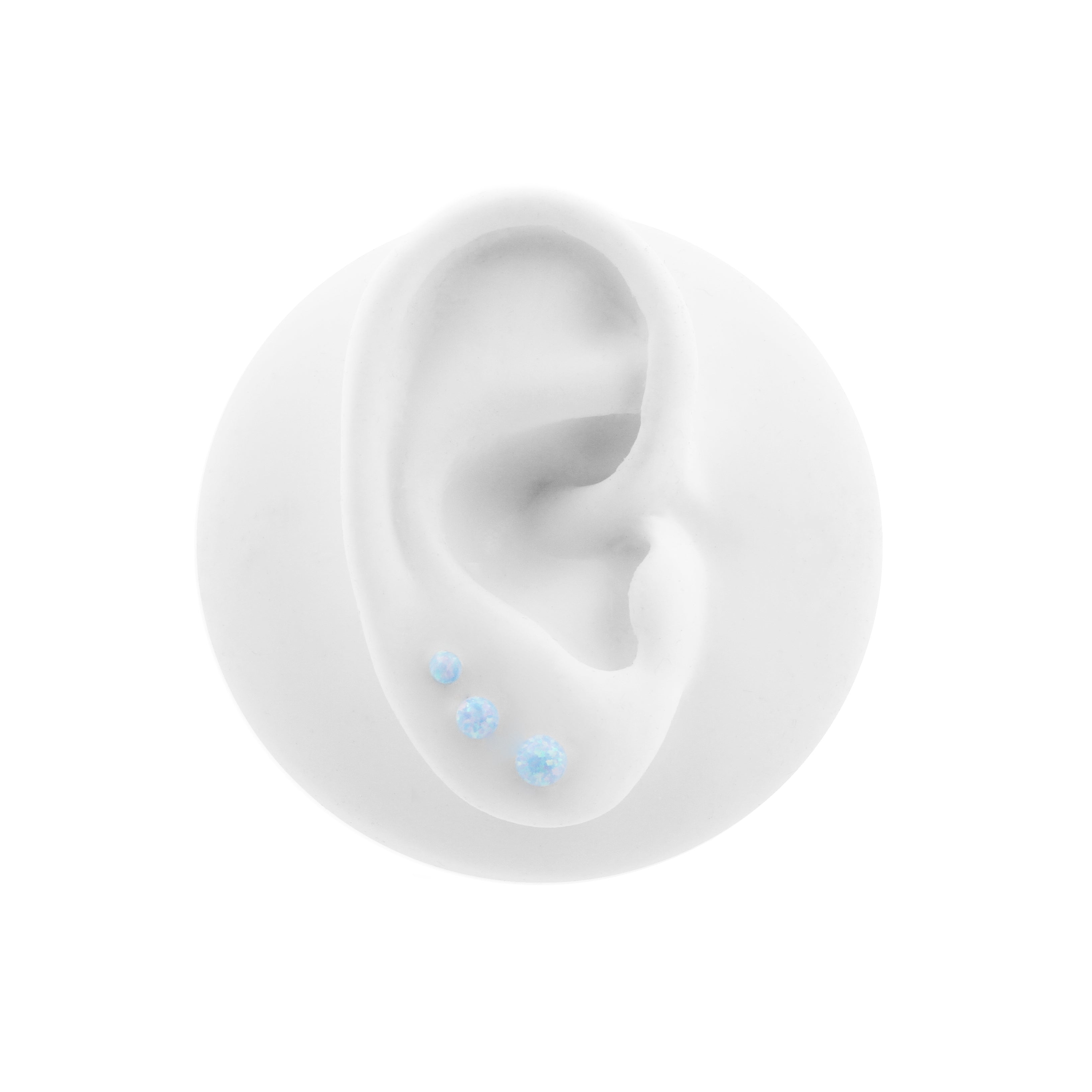 Titanium Opal Ball - Light Blue Opal instantly adds a stylish touch to your piercing. This Threadless Top is made of Titanium with a synthetic opal in Light Blue Opal. The threadless system allows you to easily combine this top with all our bars, which we call Threadless Base, for a perfect fit and ultimate comfort.