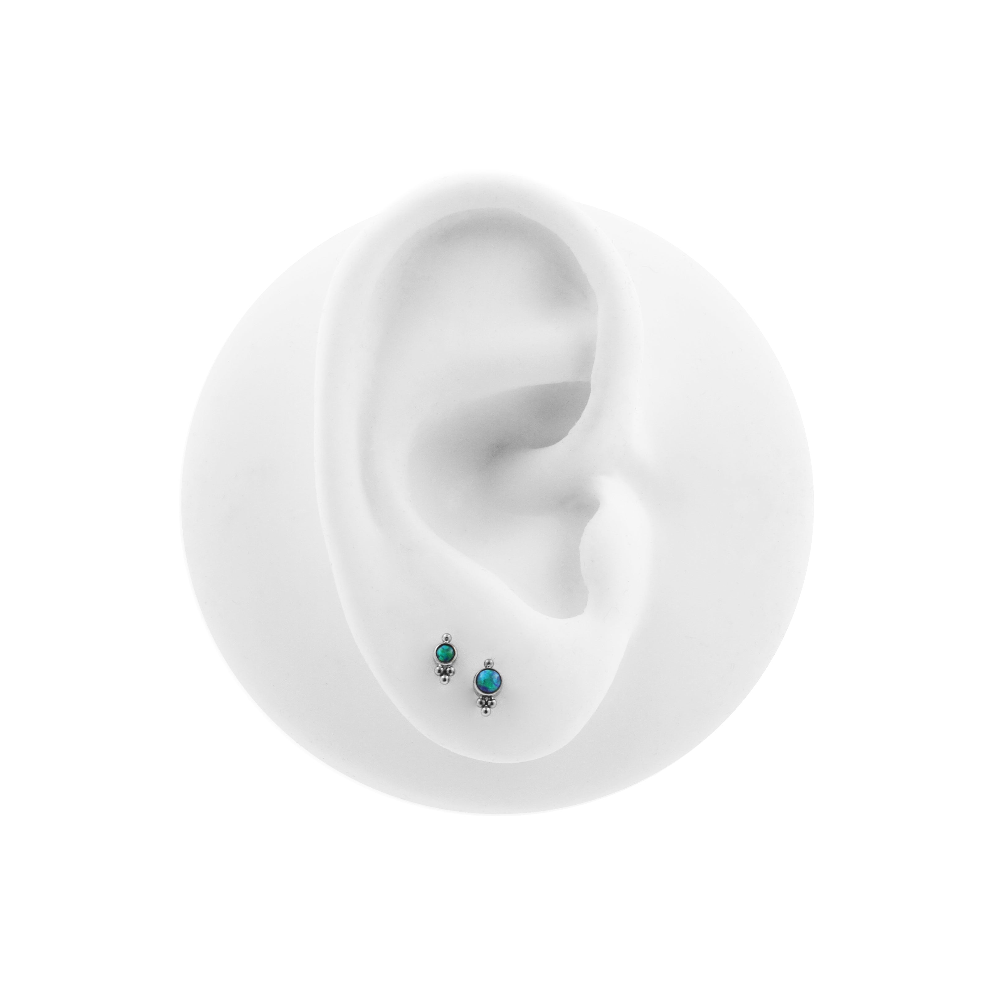 Titanium Opal Cluster - Black Opal instantly adds a stylish touch to your piercing. This Threadless Top is made of Titanium with a synthetic opal in Black Opal. The threadless system allows you to easily combine this top with all our bars, which we call Threadless Base, for a perfect fit and ultimate comfort.