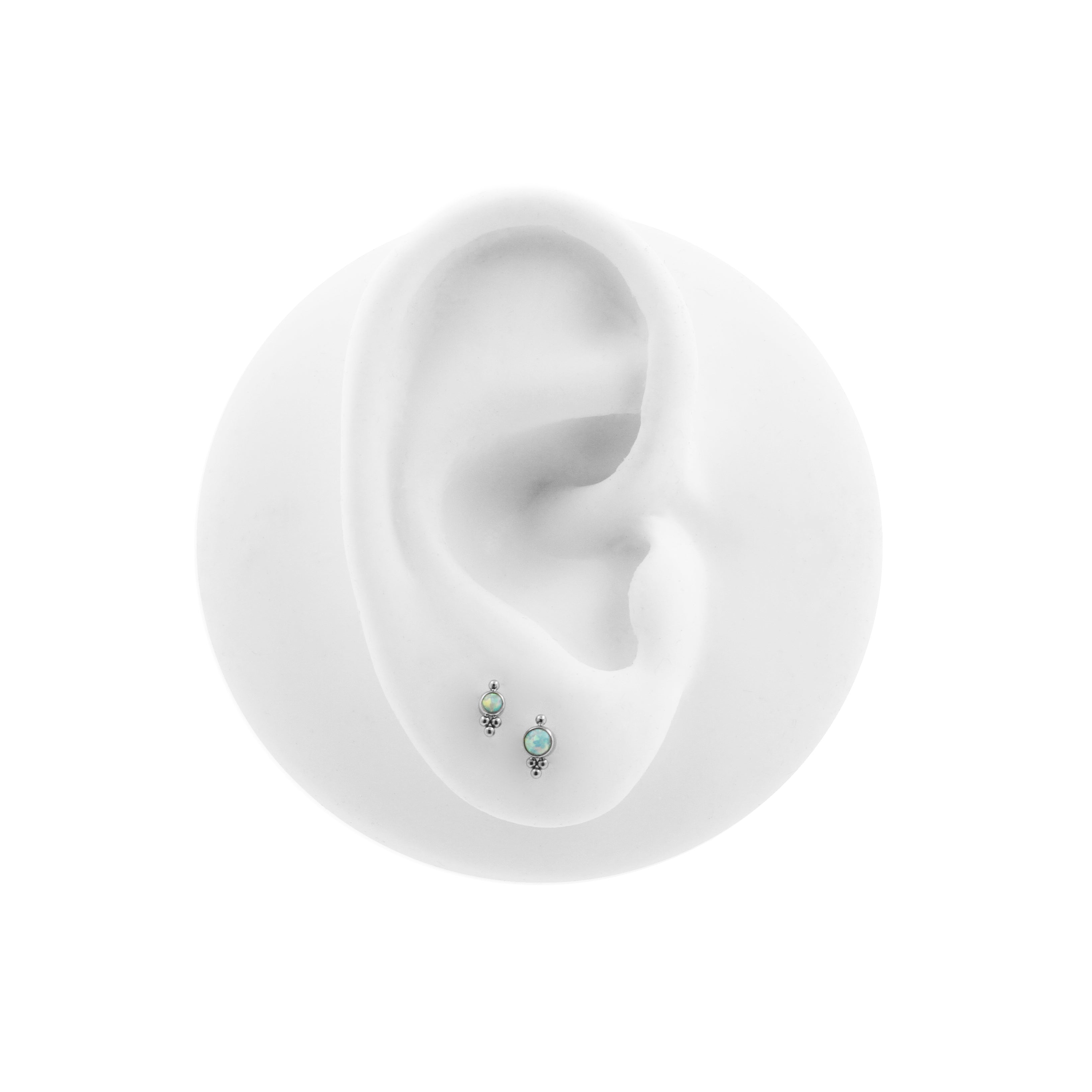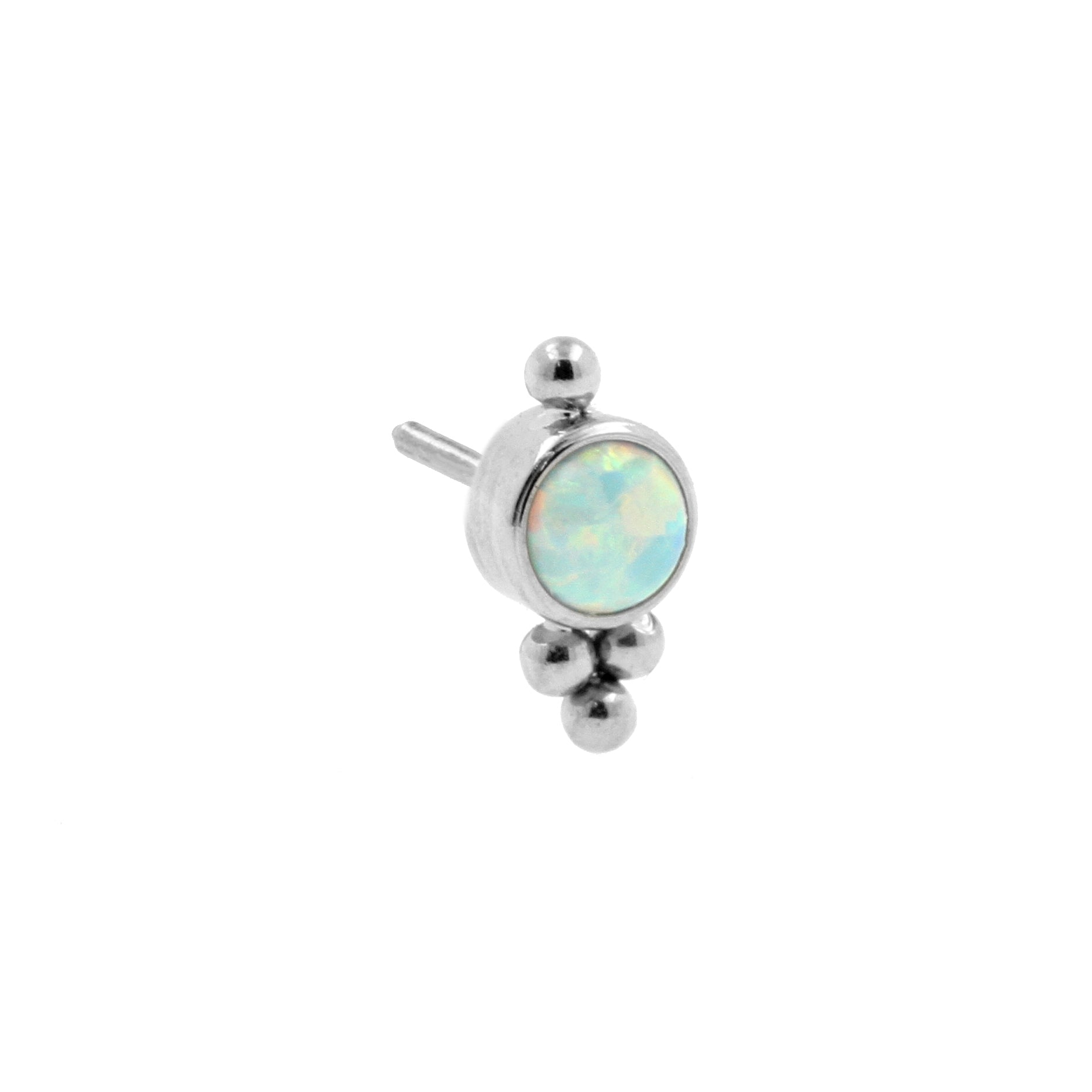 Titanium Opal Cluster - Light Green Opal instantly adds a stylish touch to your piercing. This Threadless Top is made of Titanium with a synthetic opal in Light Green Opal. The threadless system allows you to easily combine this top with all our bars, which we call Threadless Base, for a perfect fit and ultimate comfort.
