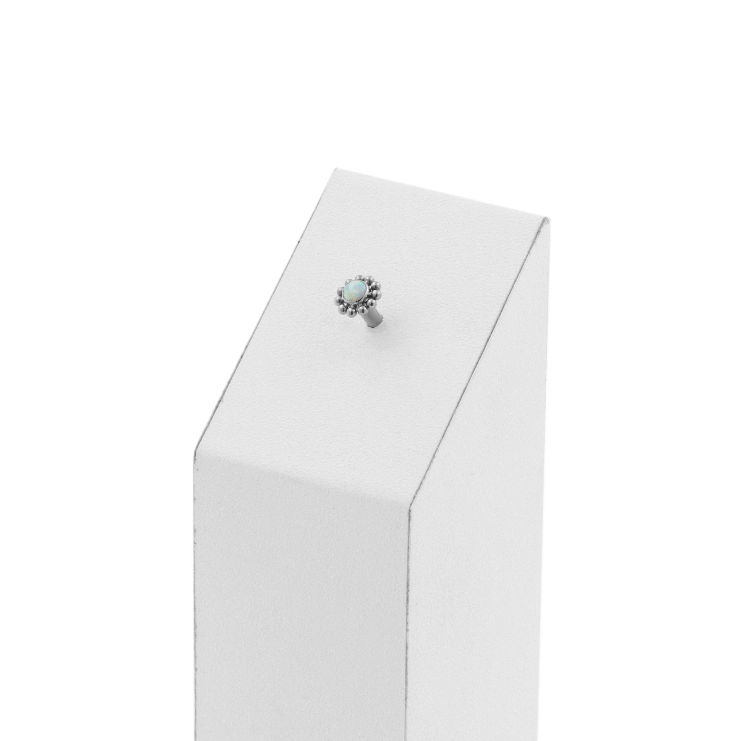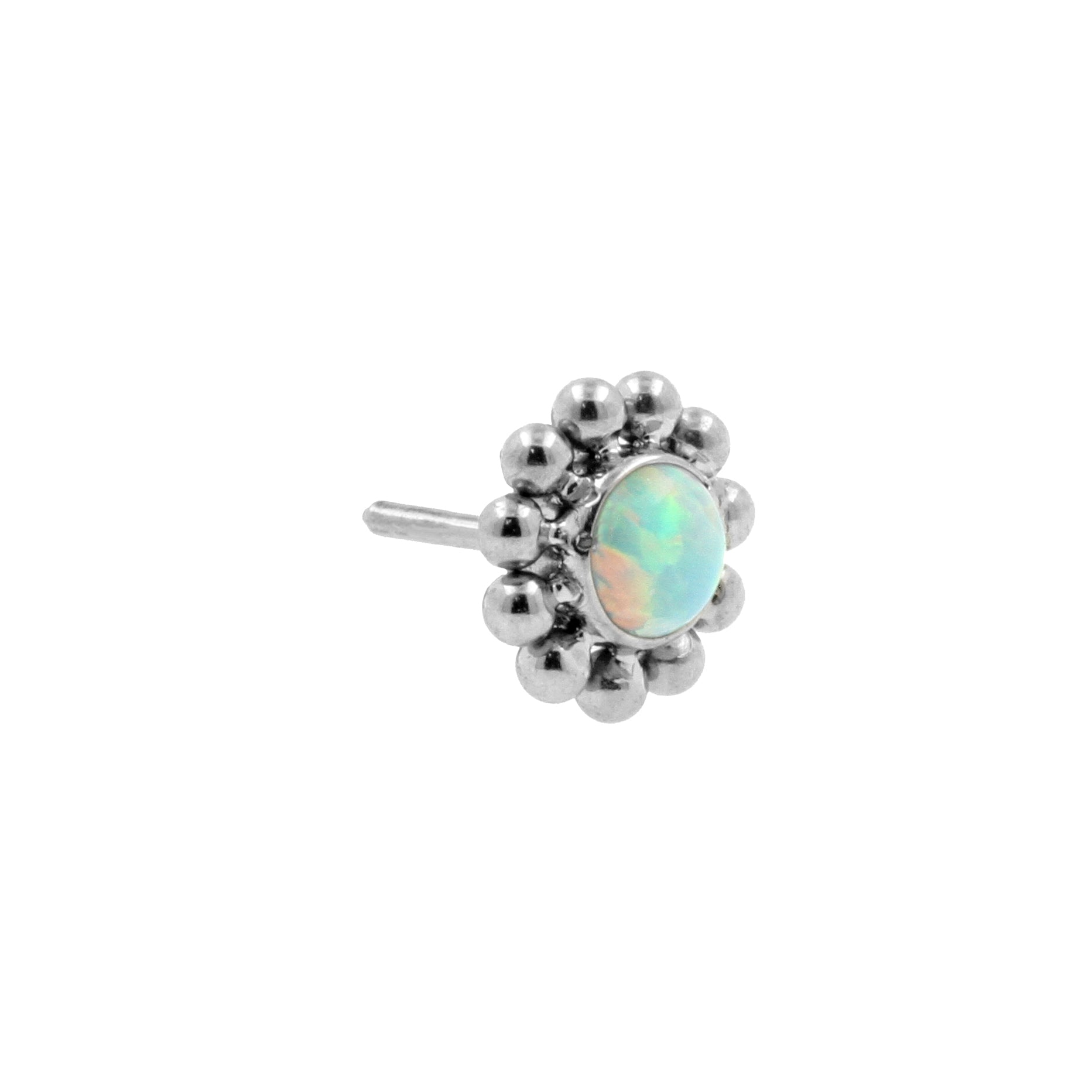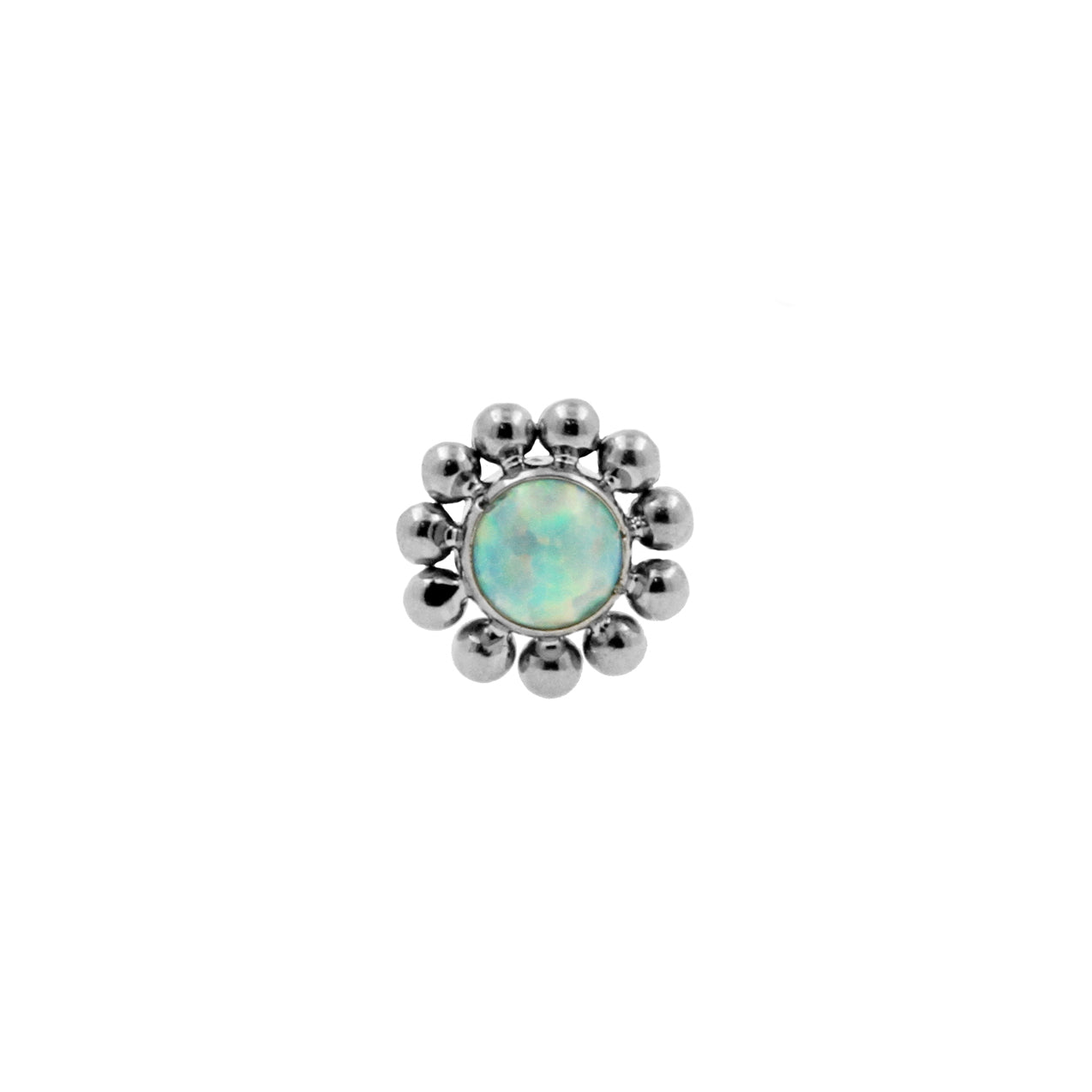 Titanium Opal Cluster - Light Green Opal instantly adds a stylish touch to your piercing. This Threadless Top is made of Titanium with a synthetic opal in Light Green Opal. The threadless system allows you to easily combine this top with all our bars, which we call Threadless Base, for a perfect fit and ultimate comfort.