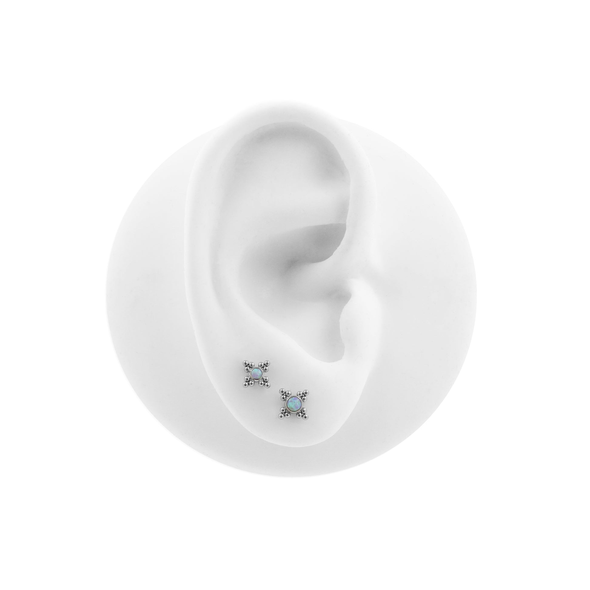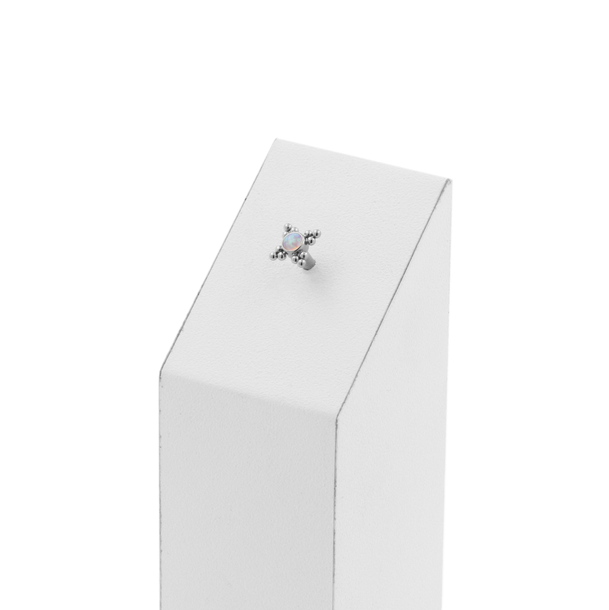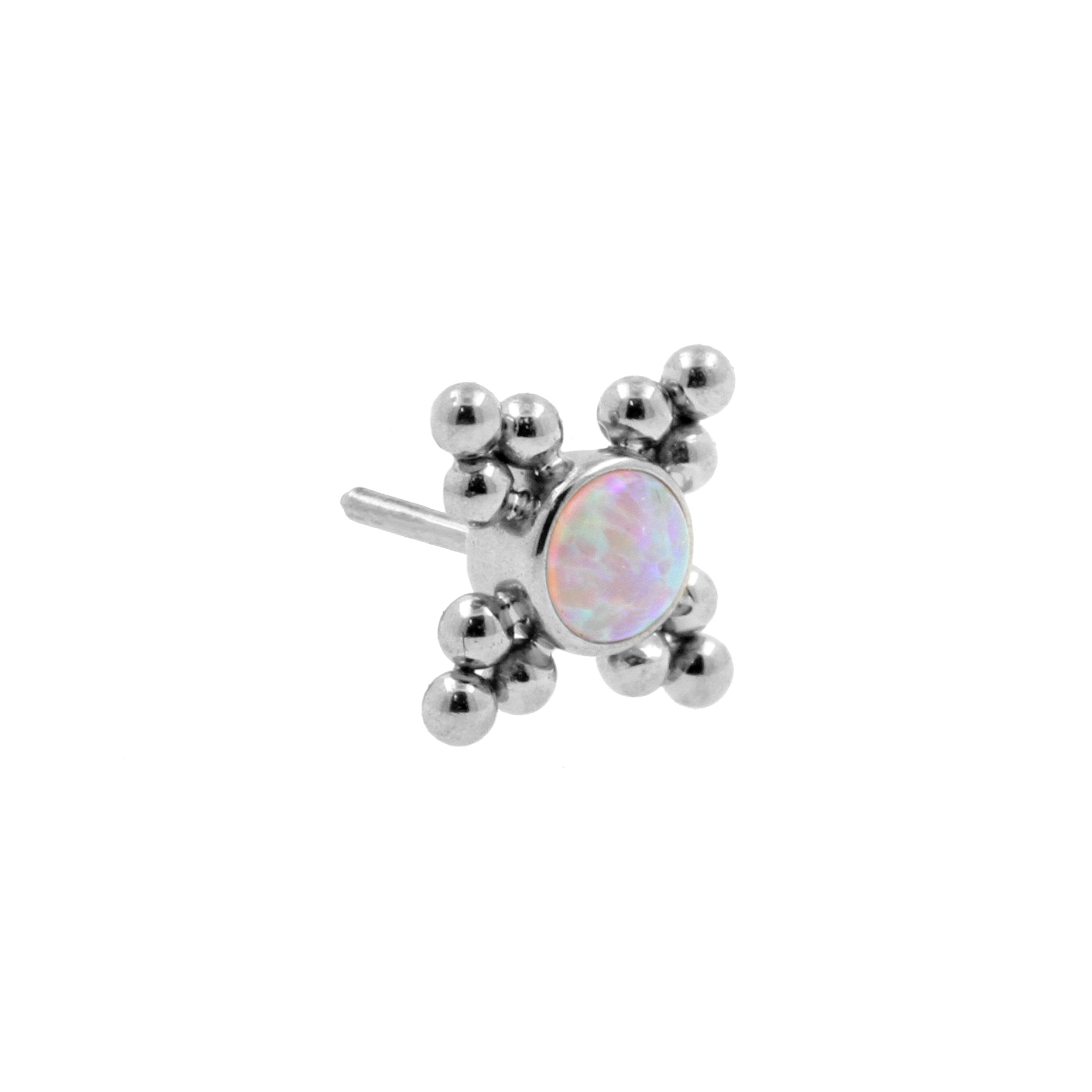 Titanium Opal Cluster - Pink Opal instantly adds a stylish touch to your piercing. This Threadless Top is made of Titanium with a synthetic opal in Pink Opal. The threadless system allows you to easily combine this top with all our bars, which we call Threadless Base, for a perfect fit and ultimate comfort.