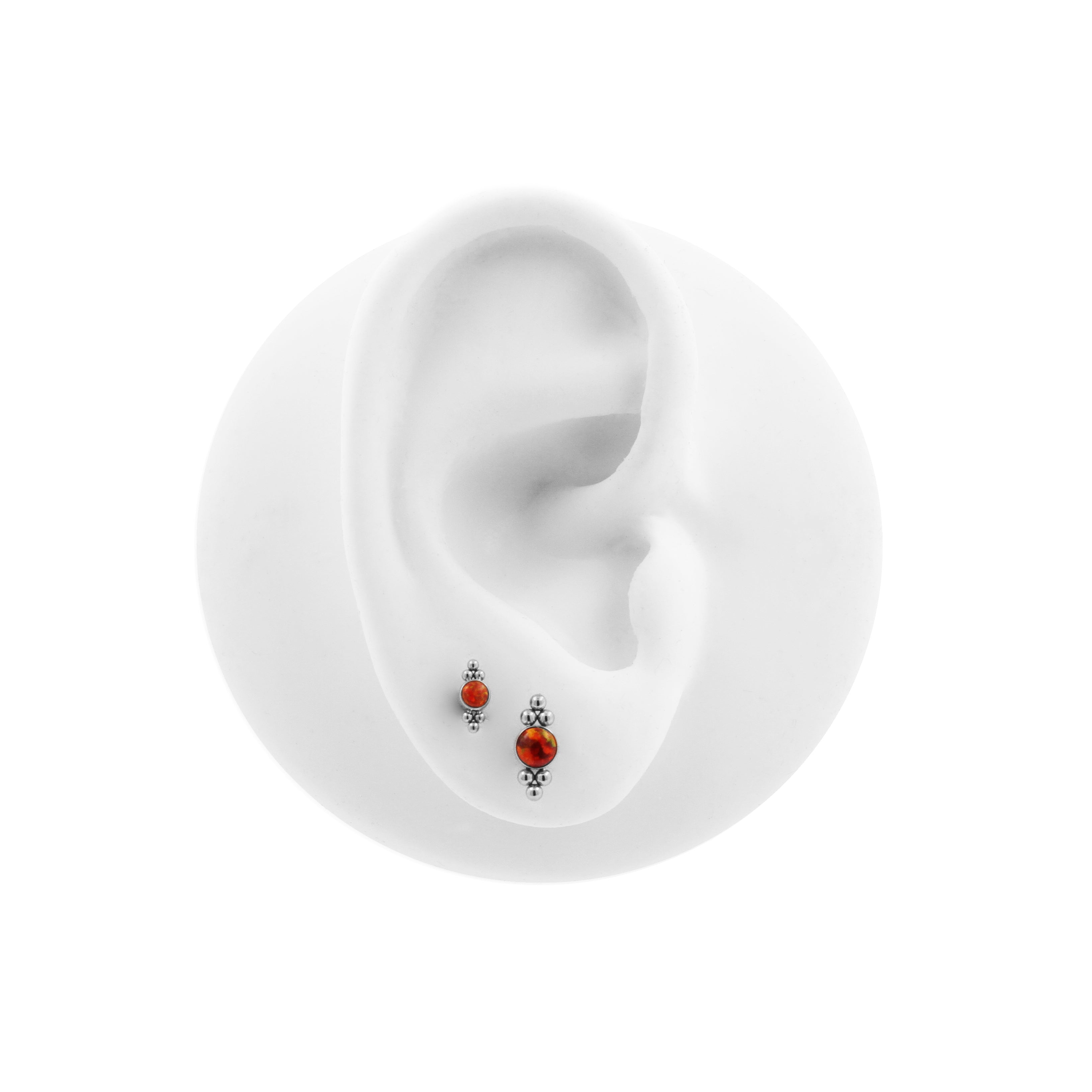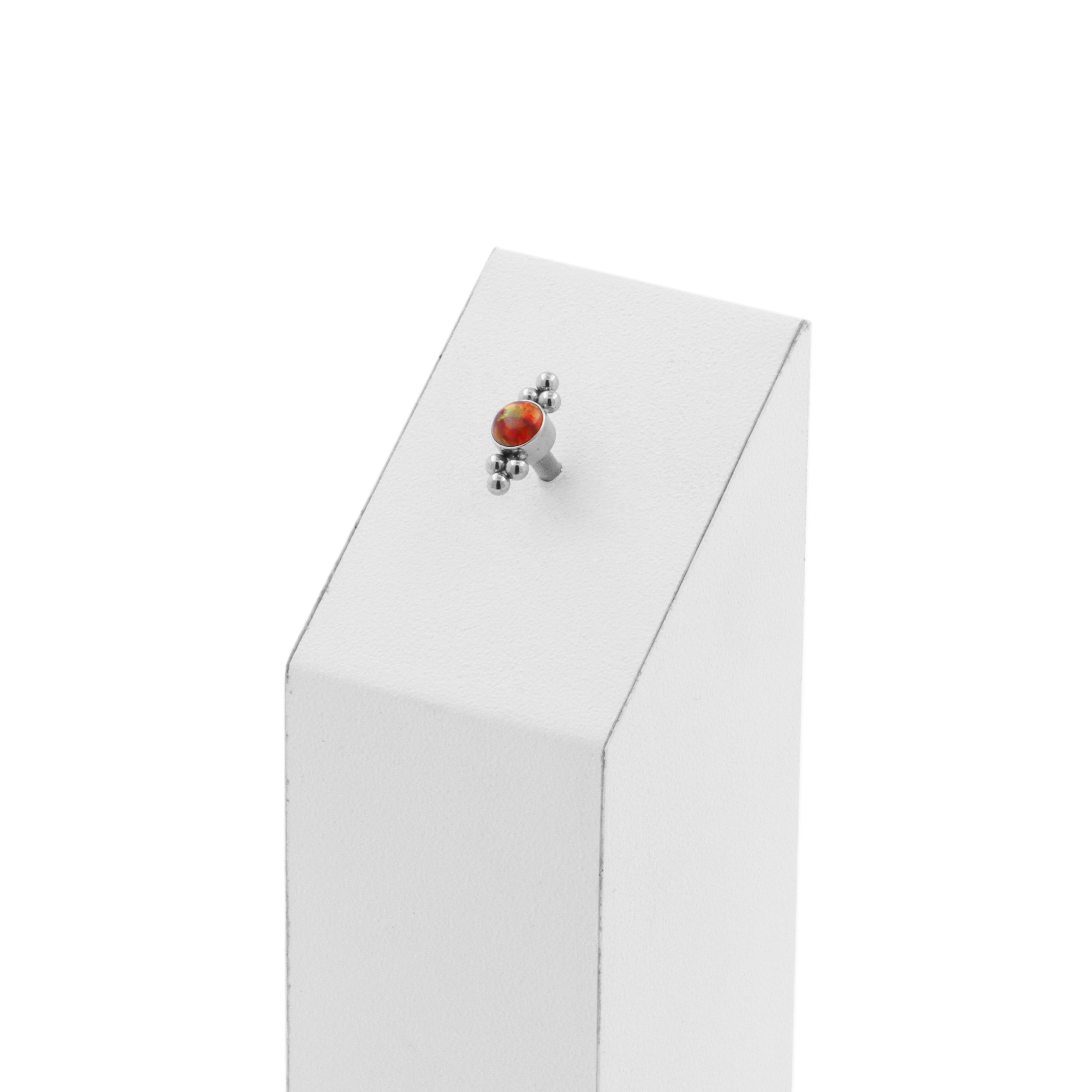 Titanium Opal Cluster - Red Opal instantly adds a stylish touch to your piercing. This Threadless Top is made of Titanium with a synthetic opal in Red Opal. The threadless system allows you to easily combine this top with all our bars, which we call Threadless Base, for a perfect fit and ultimate comfort.