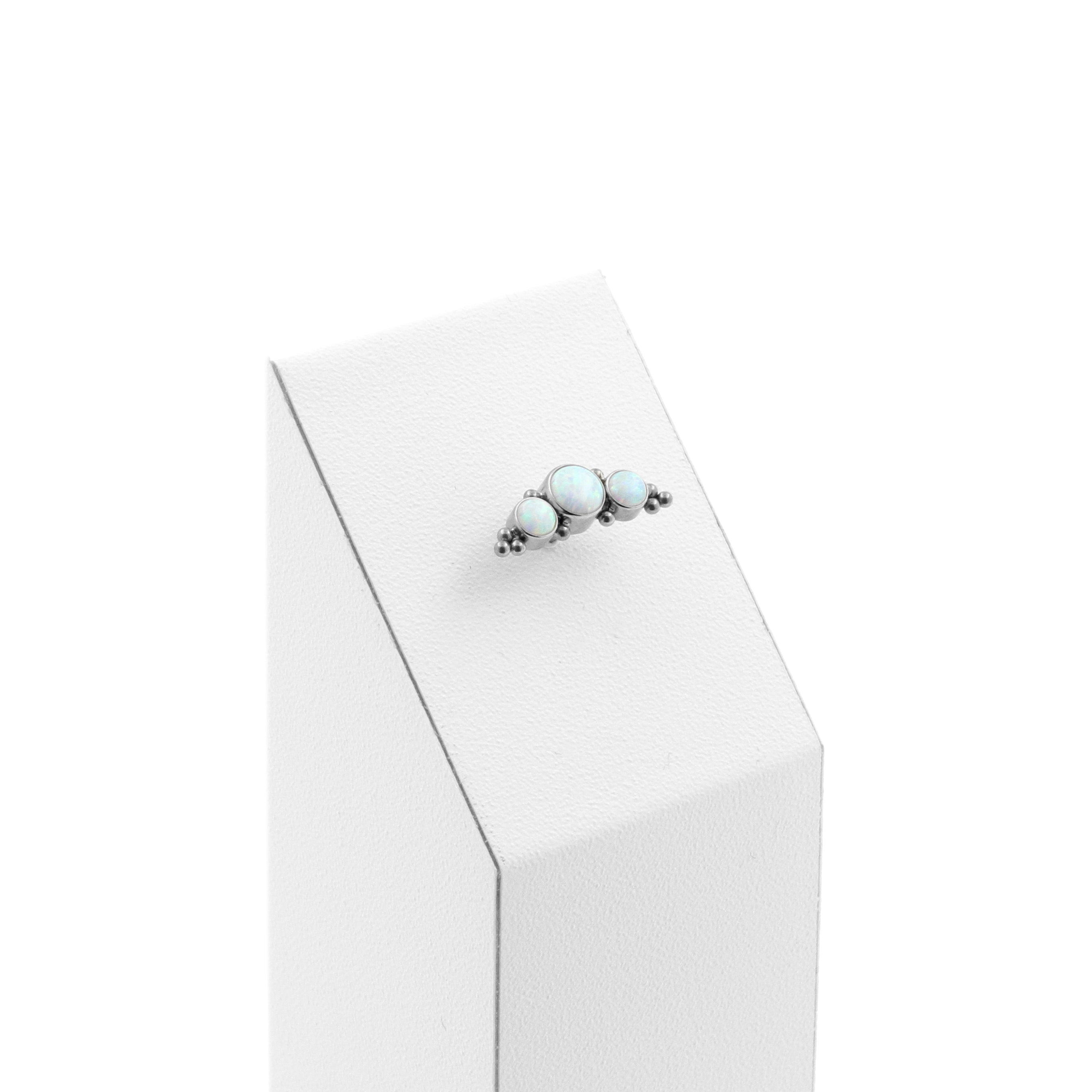 Stand out in the crowd with our Titanium Opal Cluster piercing jewelry! These clusters are perfect for all kinds of piercings. Each cluster is set with beautiful opal and made of high quality titanium. Suitable for 1,2 mm internally threaded piercing jewelry. (Extra info: the thread of the accessory itself measures 0,8 mm in thickness and is suitable for 1,2 mm All Over Piercings internally threaded piercing jewelry). You will receive the cluster accessory only upon ordering, without stud or post. Please note that due to the unique shape of the attachment, changing jewelry might be a bit more challenging. But practice makes perfect and it will all be more than worth it in the end, because our Opal Clusters will turn your piercings into real eyecatchers!