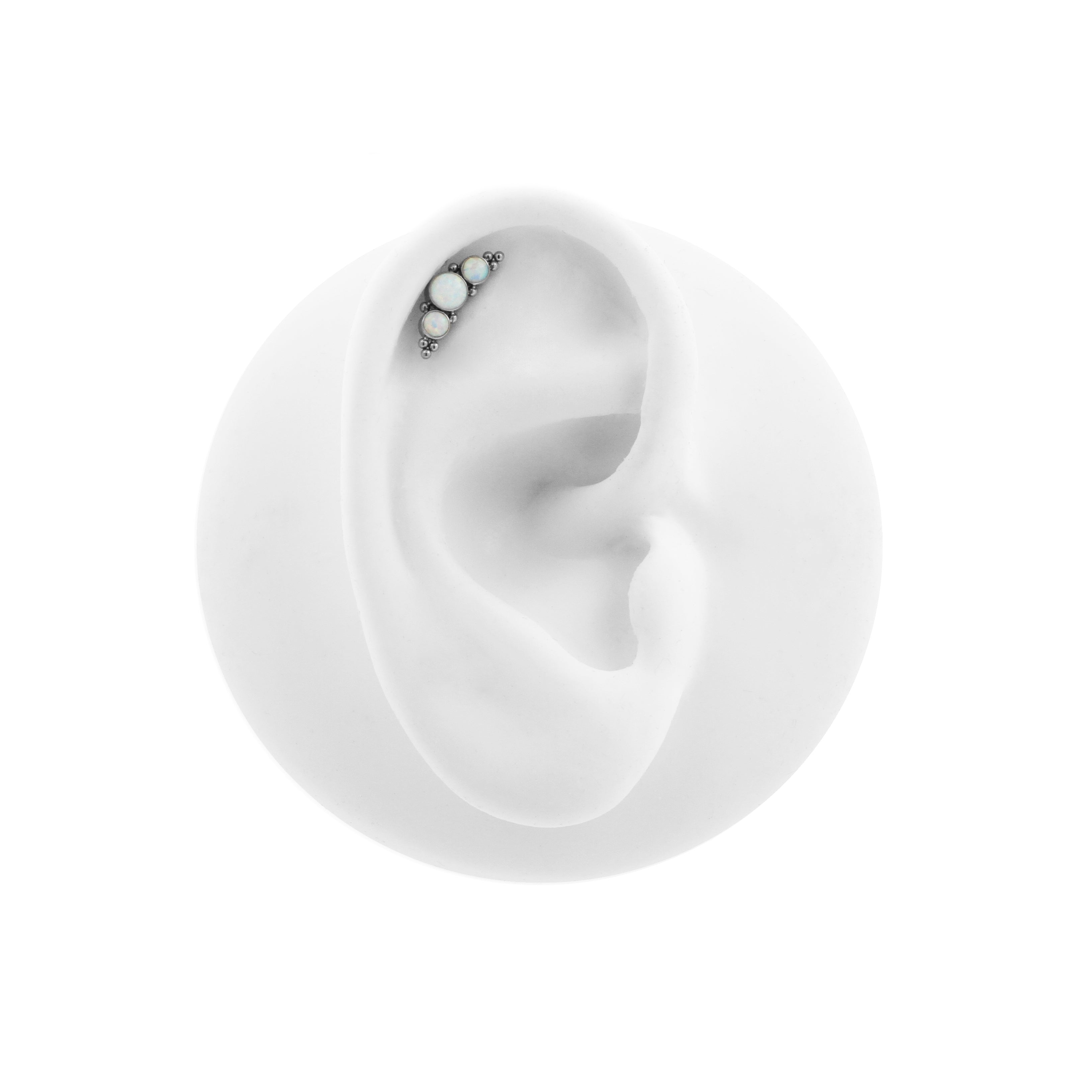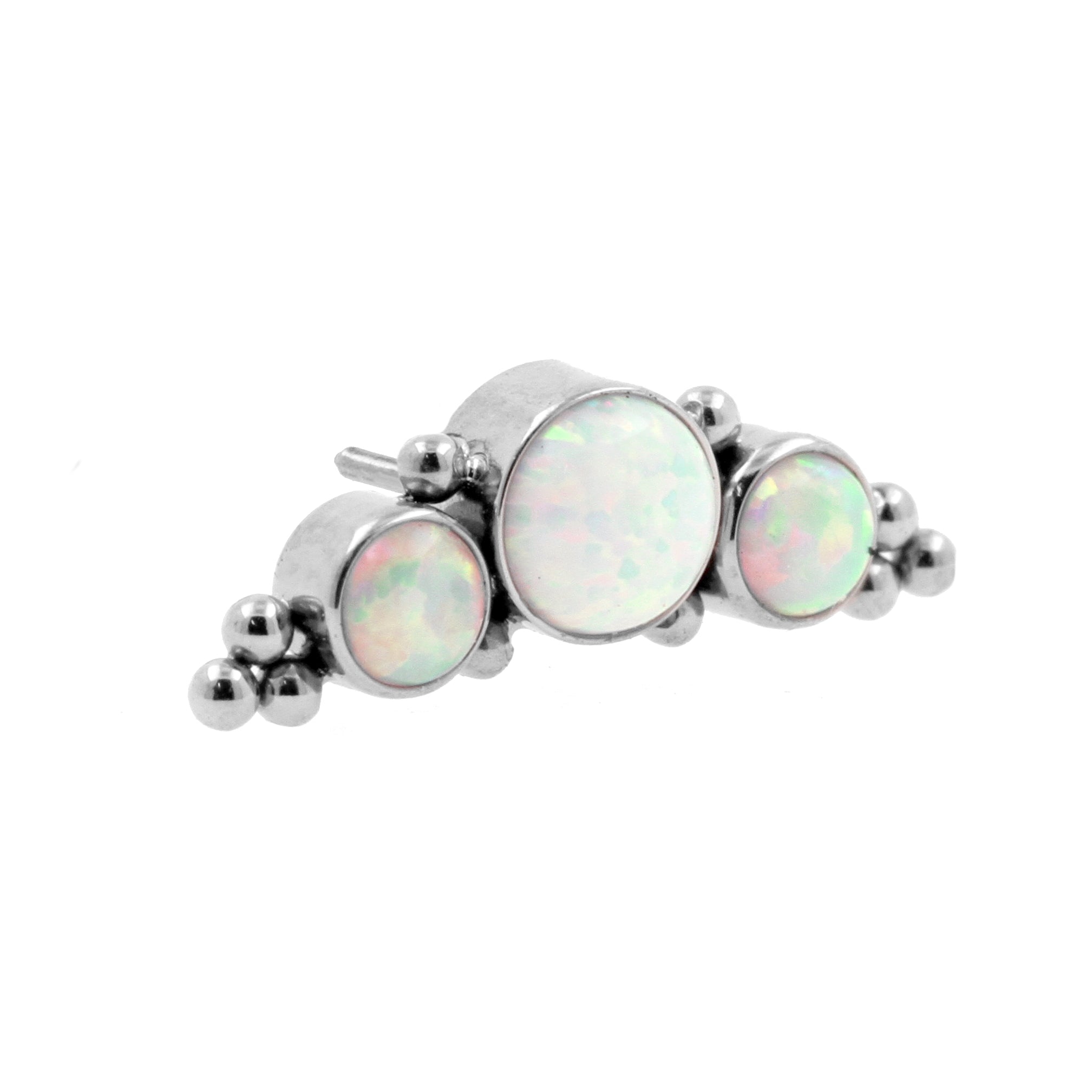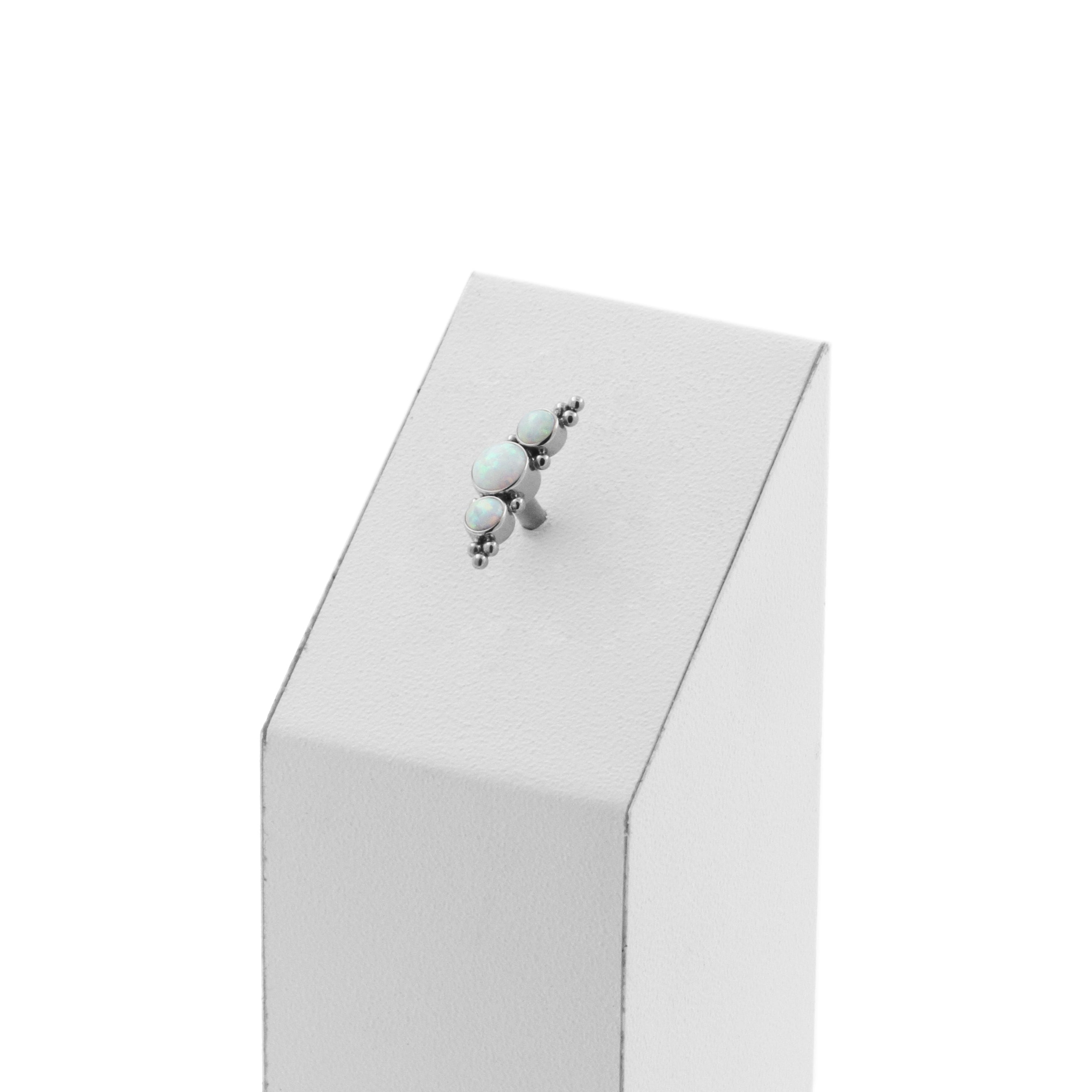 Titanium Opal Cluster - White Opal instantly adds a stylish touch to your piercing. This Threadless Top is made of Titanium. The threadless system allows you to easily combine this top with all our bars, which we call Threadless Base, for a perfect fit and ultimate comfort.