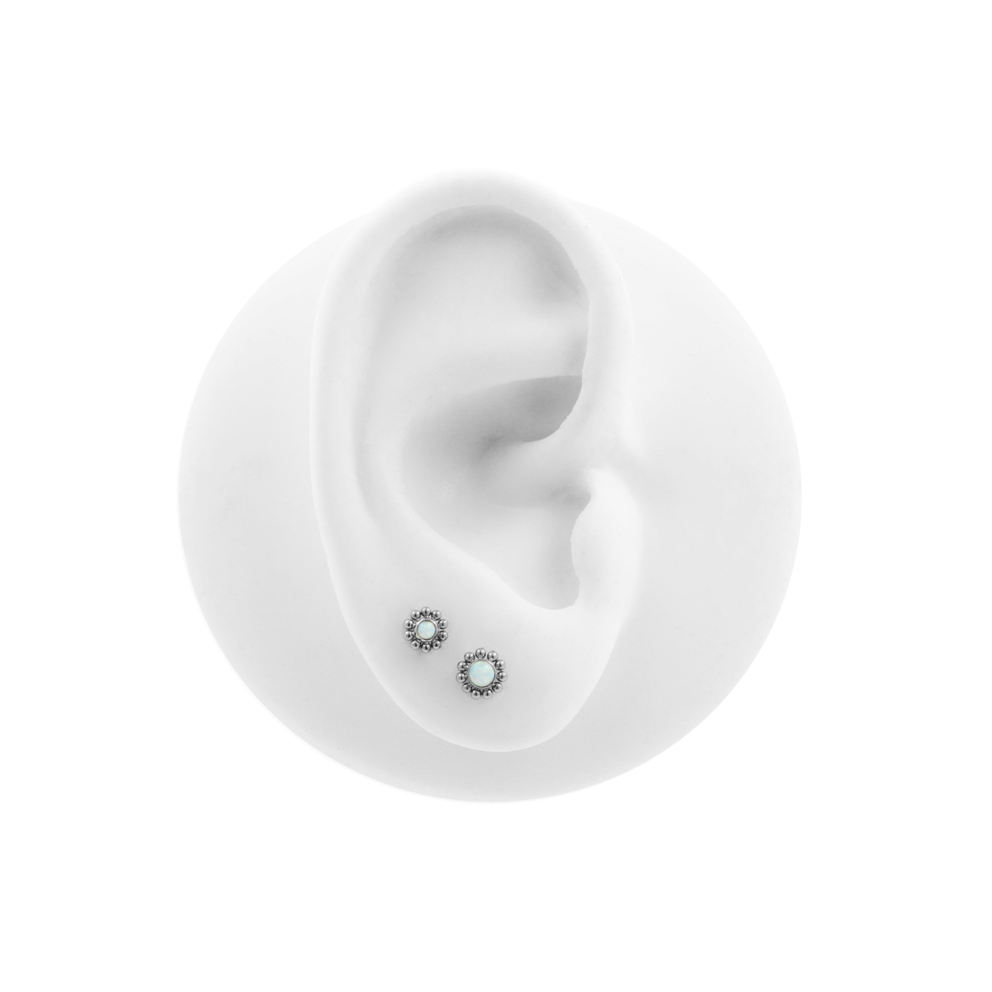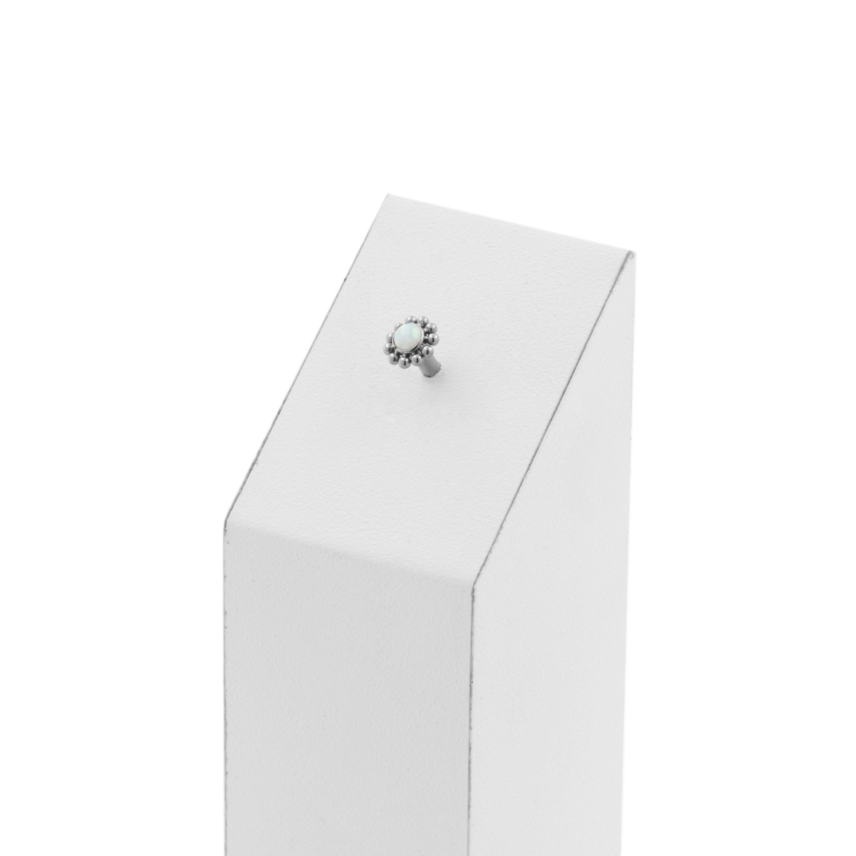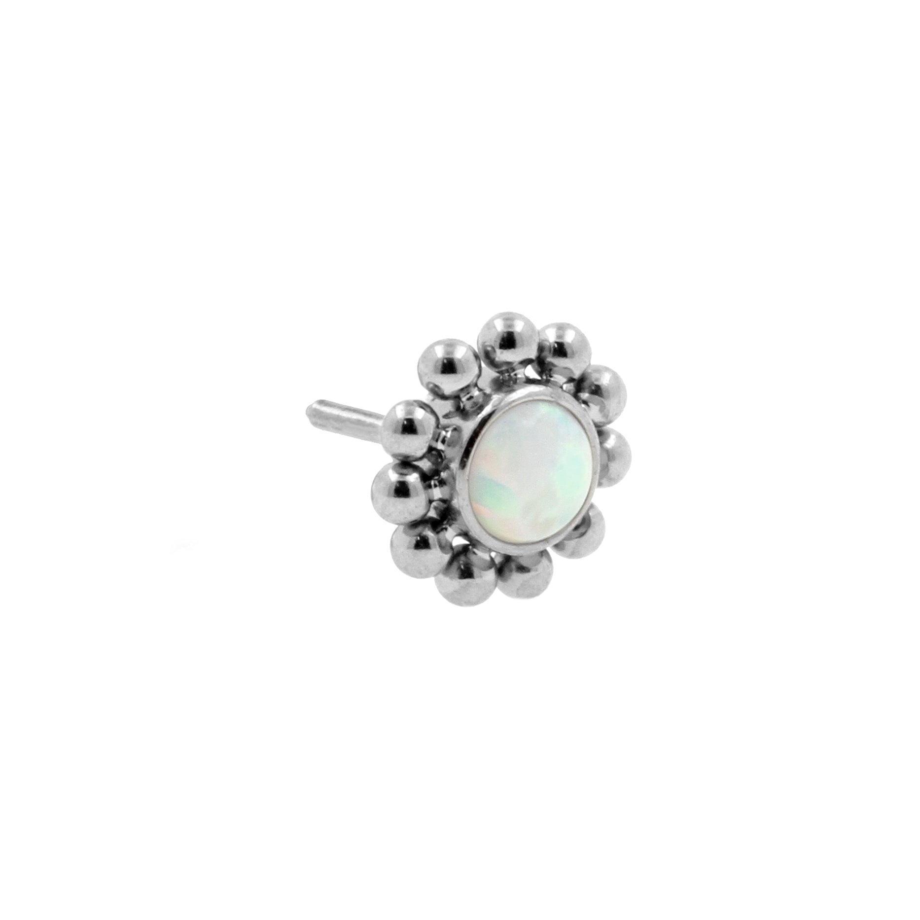 Titanium Opal Cluster - White Opal instantly adds a stylish touch to your piercing. This Threadless Top is made of Titanium. The threadless system allows you to easily combine this top with all our bars, which we call Threadless Base, for a perfect fit and ultimate comfort.