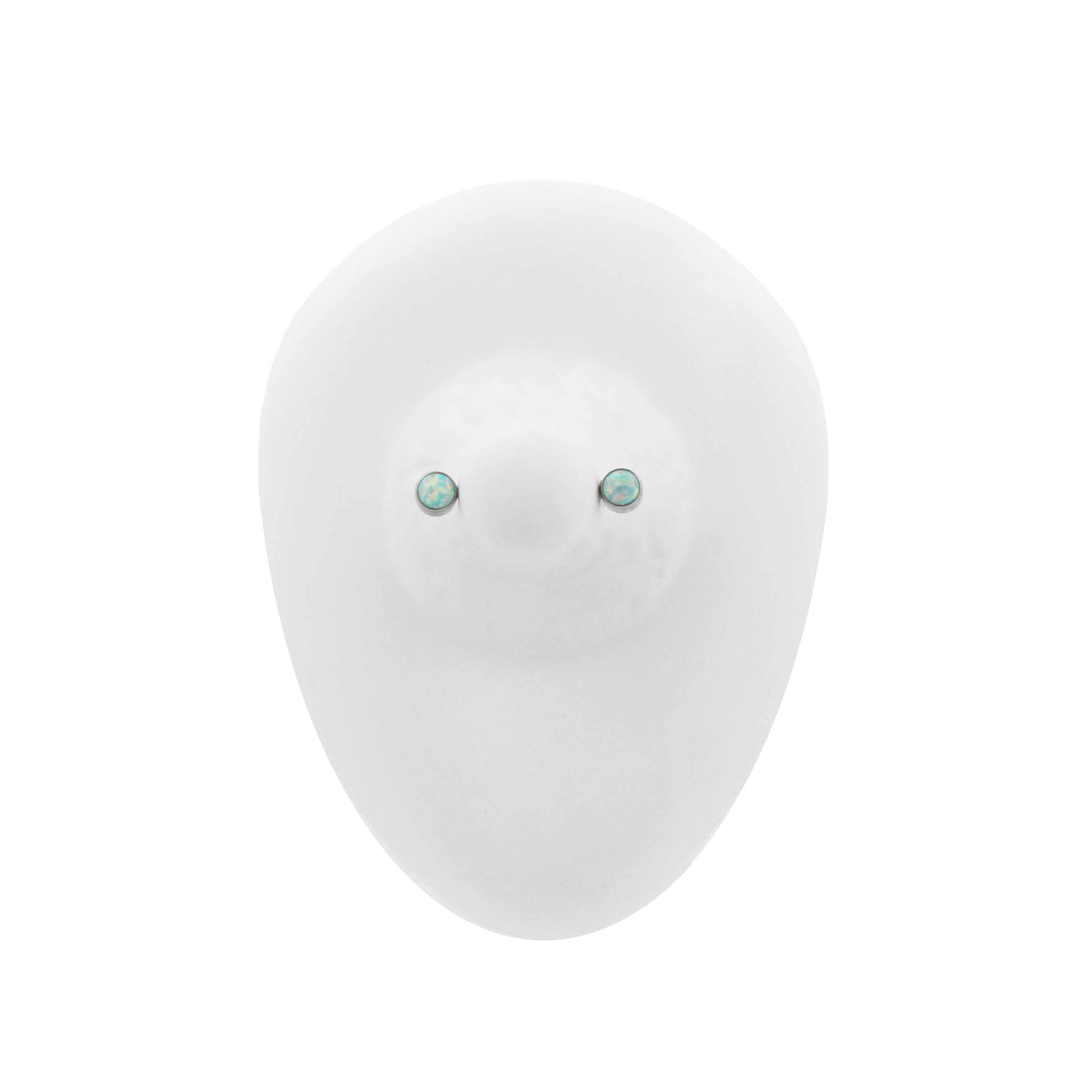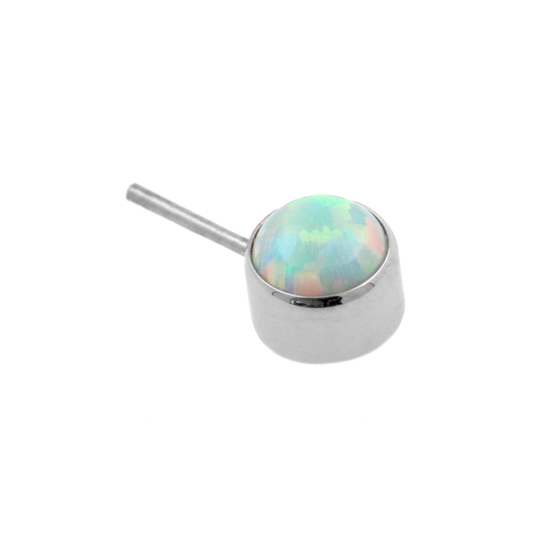 Titanium Opal Disc 90 Degrees - Light Green Opal instantly adds a stylish touch to your piercing. This Threadless Top is made of Titanium with a synthetic opal in Light Green Opal. The threadless system allows you to easily combine this top with all our bars, which we call Threadless Base, for a perfect fit and ultimate comfort.