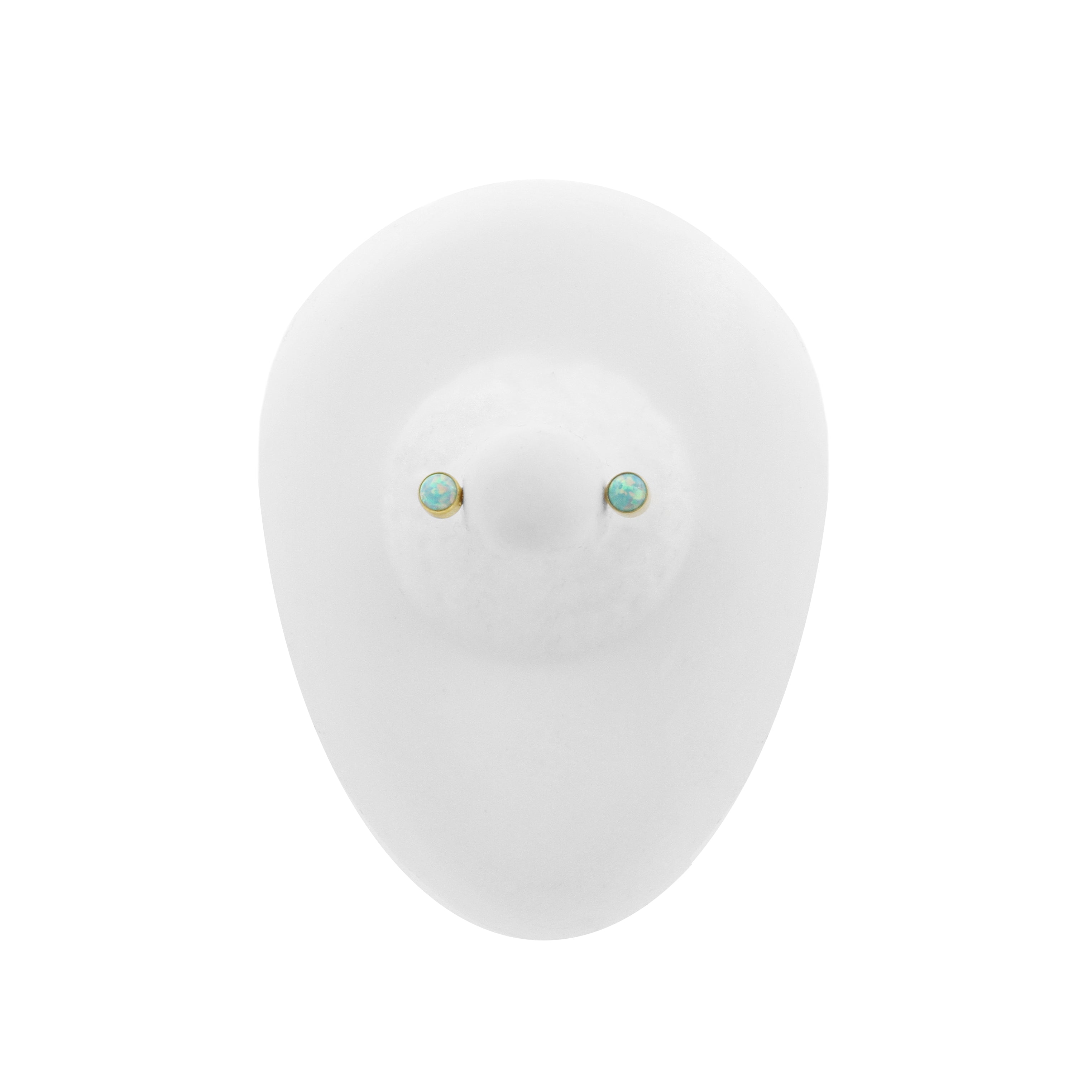 Titanium Opal Disc 90 Degrees - Light Green Opal instantly adds a stylish touch to your piercing. This Threadless Top is made of Titanium with a synthetic opal in Light Green Opal. The threadless system allows you to easily combine this top with all our bars, which we call Threadless Base, for a perfect fit and ultimate comfort.