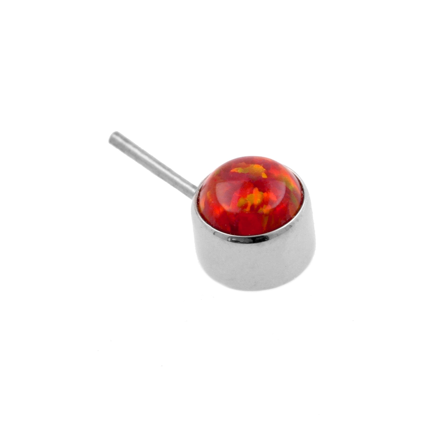 Titanium Opal Disc 90 Degrees - Red Opal instantly adds a stylish touch to your piercing. This Threadless Top is made of Titanium with a synthetic opal in Red Opal. The threadless system allows you to easily combine this top with all our bars, which we call Threadless Base, for a perfect fit and ultimate comfort.