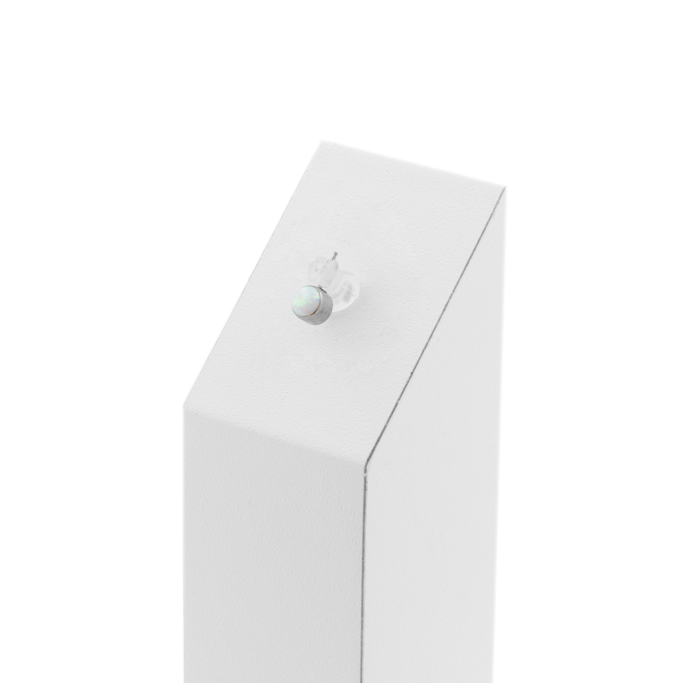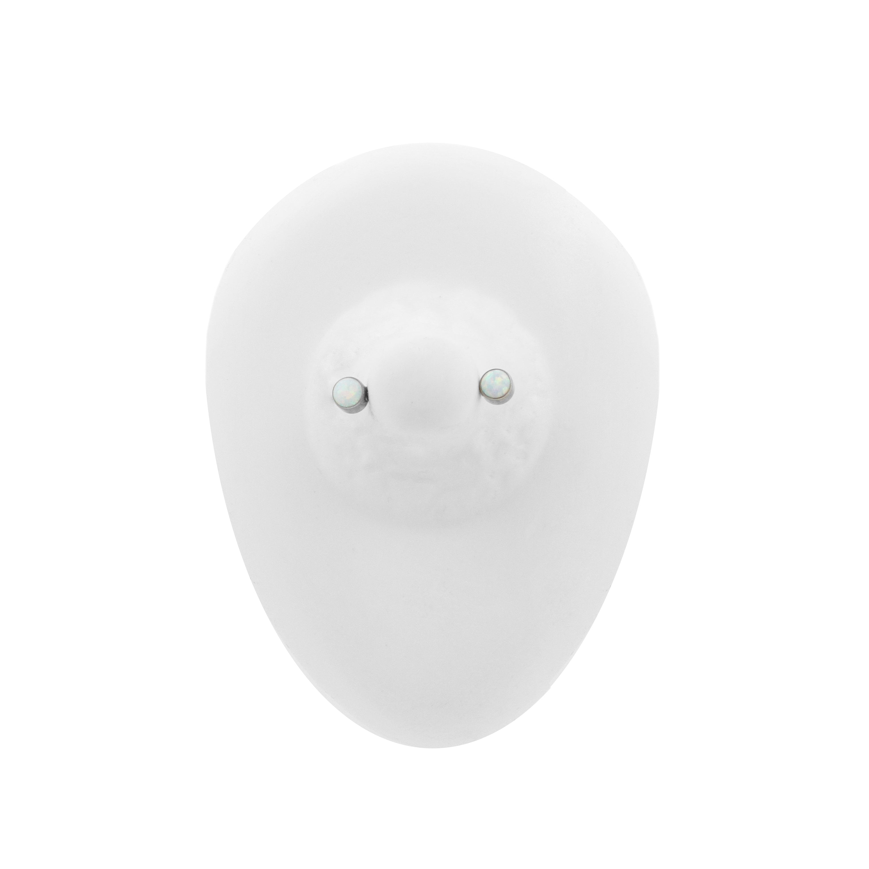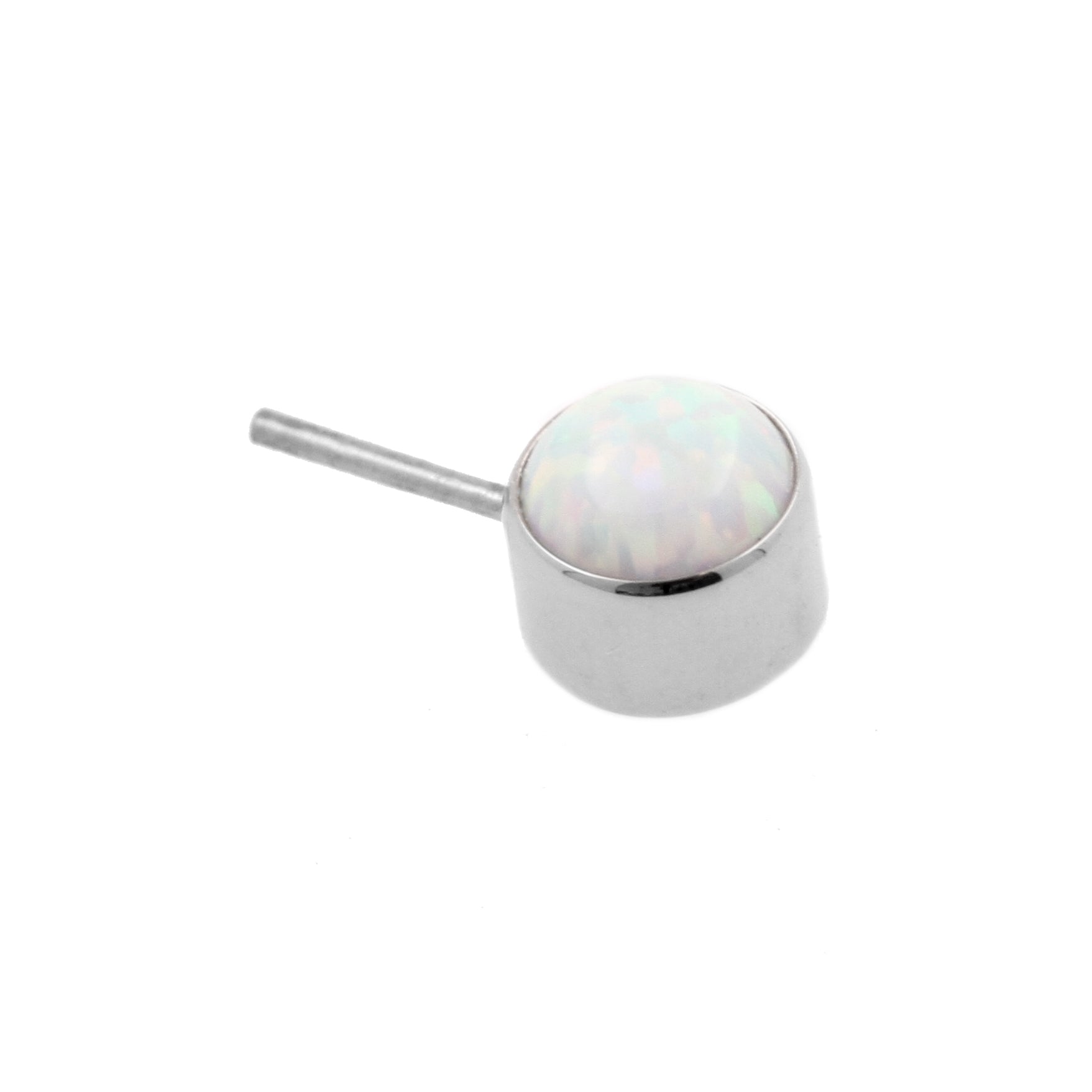 Titanium Opal Disc 90 Degrees - White Opal instantly adds a stylish touch to your piercing. This Threadless Top is made of Titanium. The threadless system allows you to easily combine this top with all our bars, which we call Threadless Base, for a perfect fit and ultimate comfort.